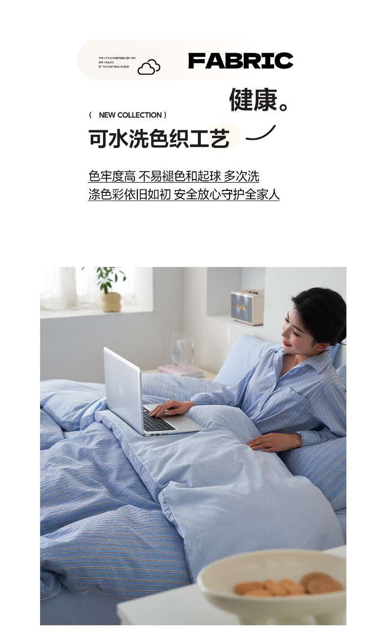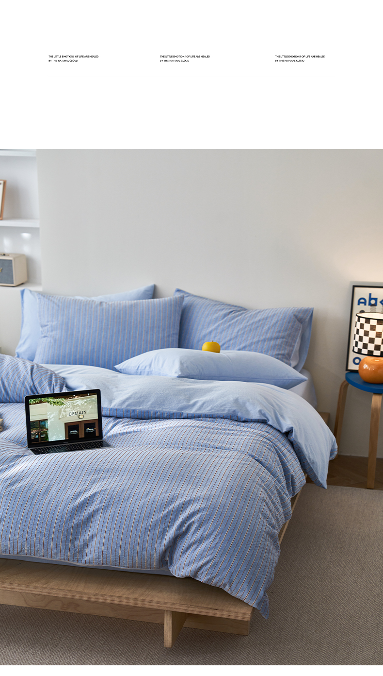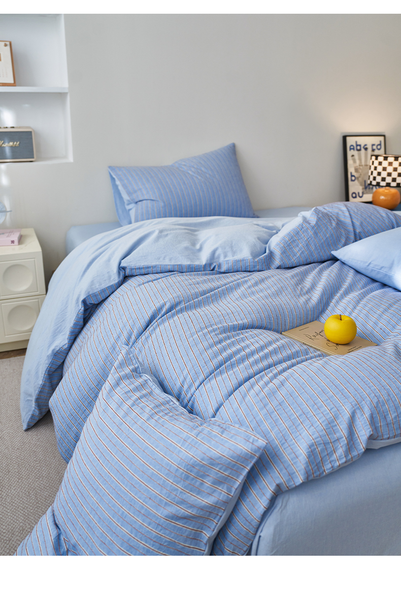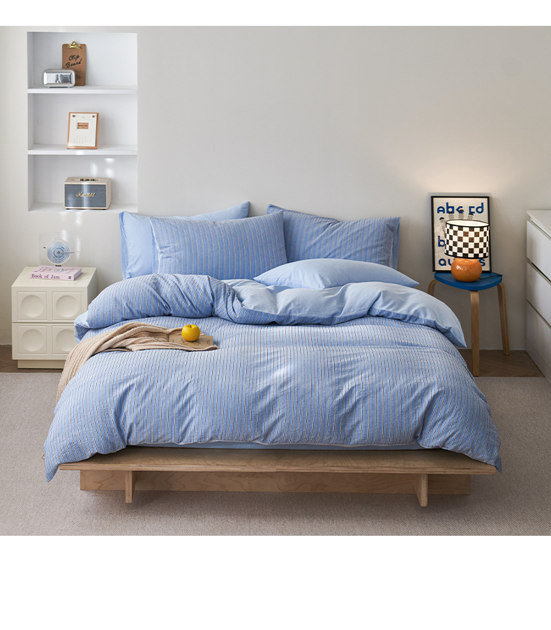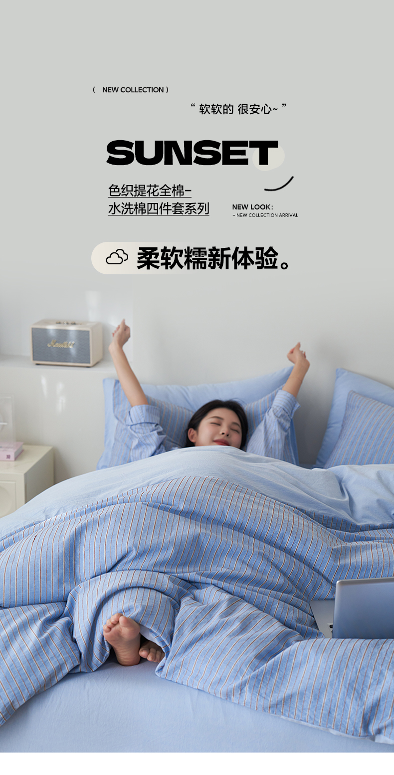 当前位置: 91家纺网 > 商品网购 > 床品套件 > 四件套 > 全棉普通四件套 > 如一 2026新款色织小提花条纹全棉纯棉水洗棉四件套 禾风-蓝