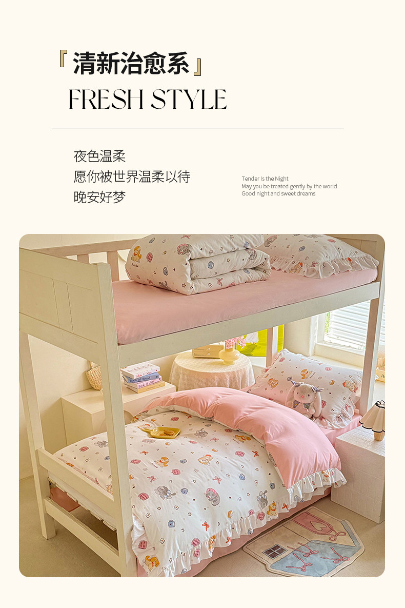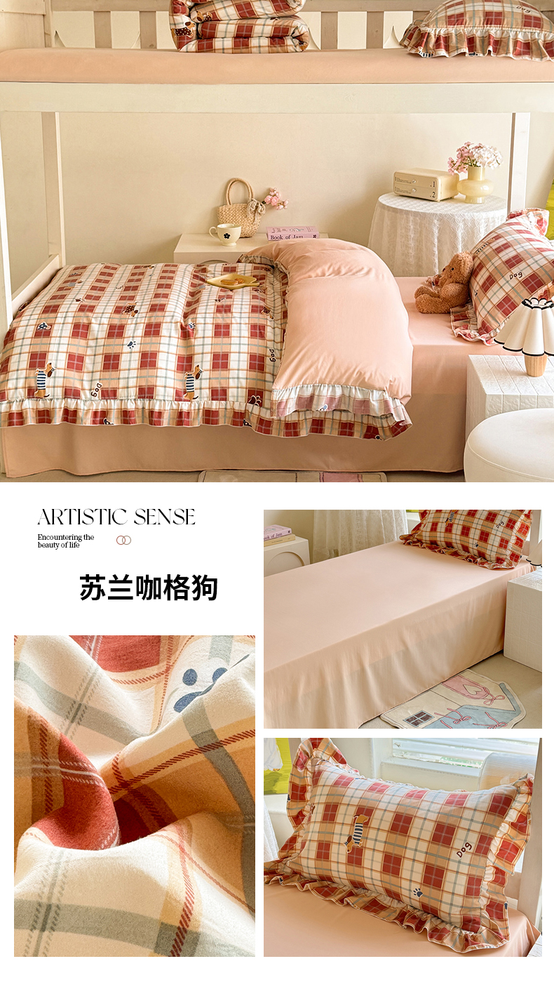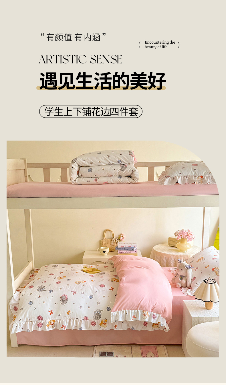 当前位置: 91家纺网 > 商品网购 > 床品套件 > 四件套 > 水洗棉四件套 > 经年 2026新款学生季上下铺韩版花边水洗云朵棉学生宿舍三件套四件套 可爱修狗