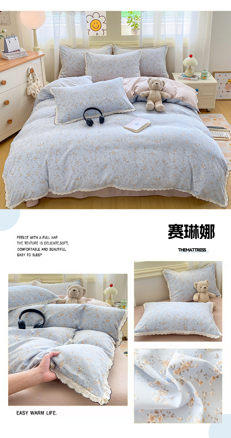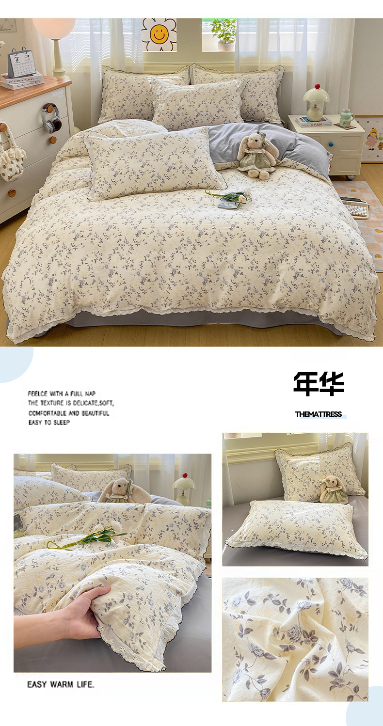 (总)豫见家纺 2026新款A类仿棉云感纱花边四件套,浪漫花叙,梦境之间,芊芊花海,碎花眠语,暗香,草莓多多,春风里,梵高印象,粉豹纹,狗狗家族,蝴蝶梦,琥珀流光,花漫漫,花影如梦,浪漫蔷薇,栗色木马纹,木马乐园,年华,日光漫游,赛琳娜,山茶左岸,线条表情狗,小鱼心事,雨沫蝴蝶结,紫色花野,紫藤花开
