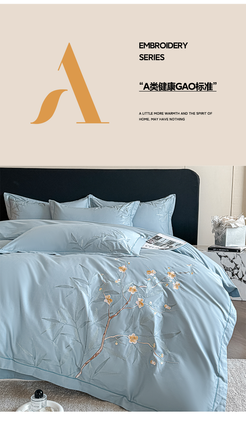 (总)湘雪家居 2026新款纯棉全棉长绒棉刺绣绣花高端礼盒四件套-竹韵系列,竹韵-粉玉,竹韵-高雅白,竹韵-绿,竹韵-浅灰,竹韵-水绿,竹韵-天空蓝,竹韵-天青,竹韵-熏韵紫