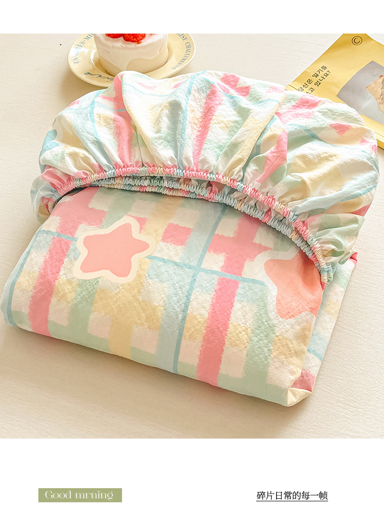 川悦生活 2026春夏新款双层纱皱皱纱单床笠床笠单件 床笠糖豆小旺
