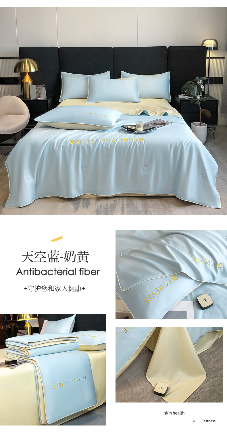(总)吾诺家居 2026新款双拼及羽毛刺绣夏被夏凉被空调被四件套-柔羽