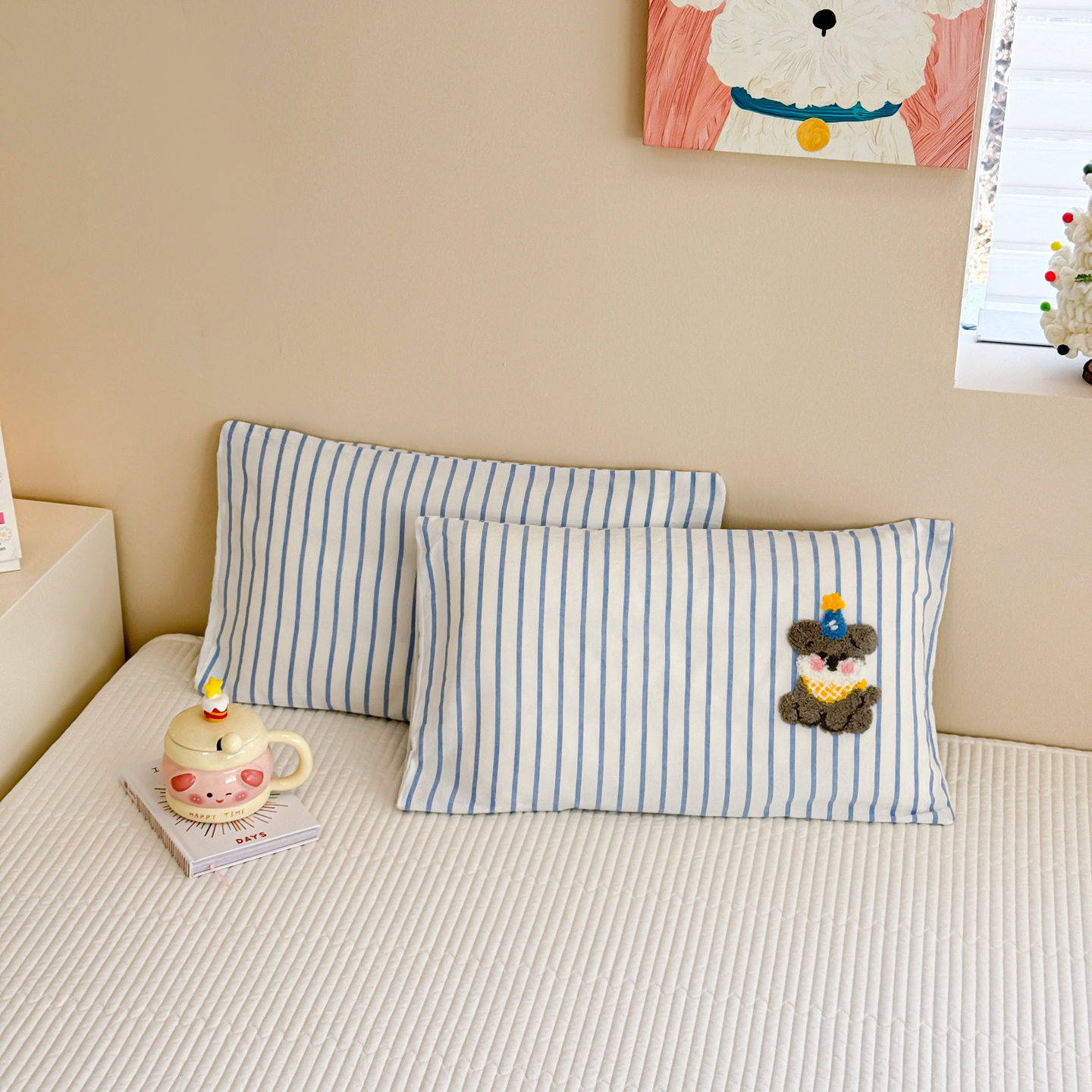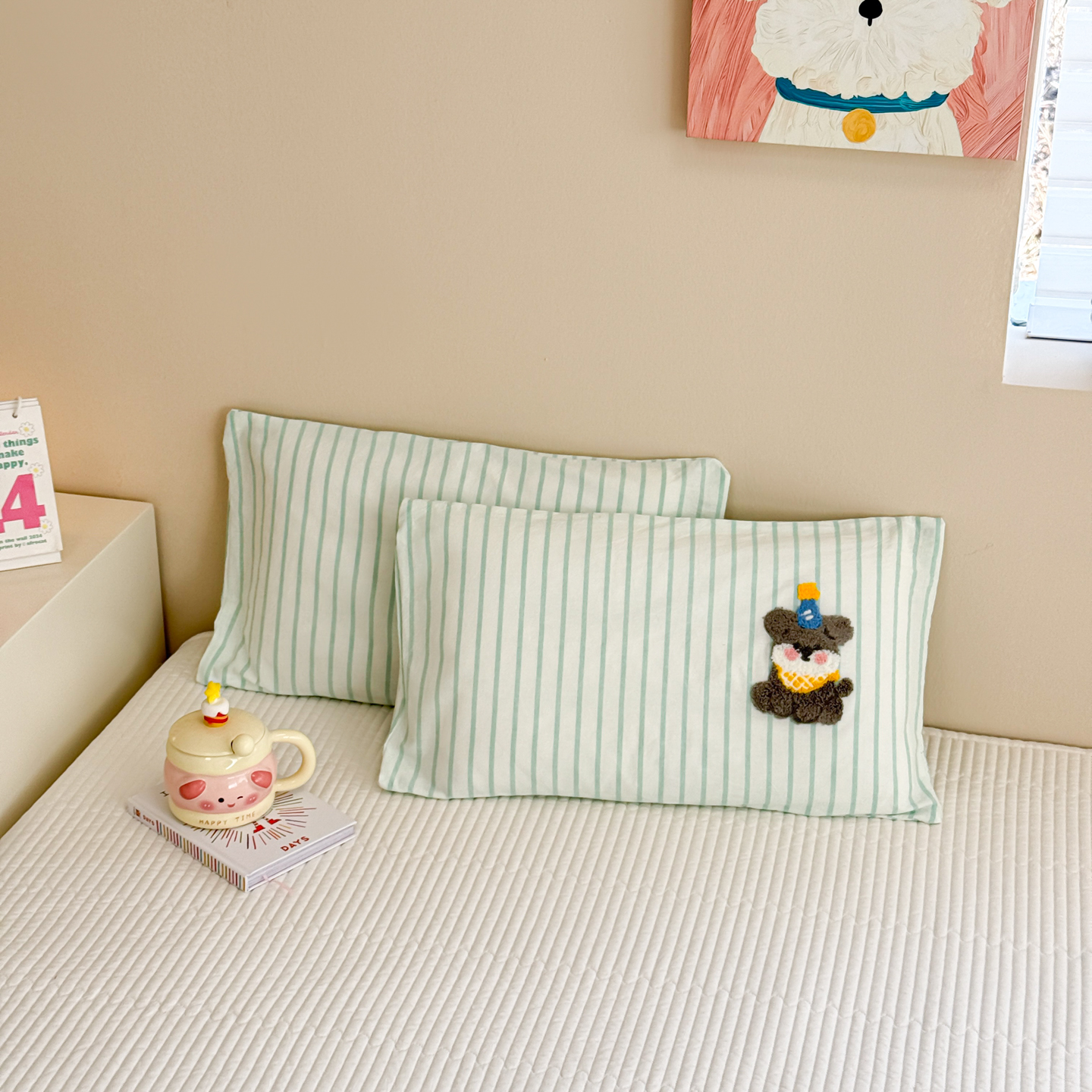(总)慕尚家纺 2026新款色织水洗棉毛巾绣单枕套 枕套单件,多米 蓝条纹,多米 绿条纹,熊呆呆
