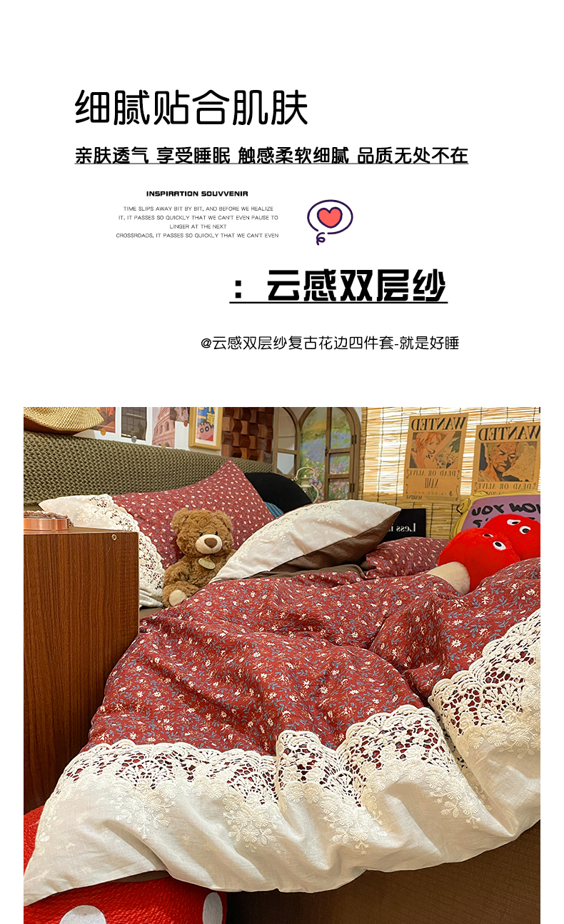 当前位置: 91家纺网 > 商品网购 > 床品套件 > 四件套 > 化纤普通四件套 > 水墨江南 2026新款甜美复古花边四件套 复古花边-樱绯
