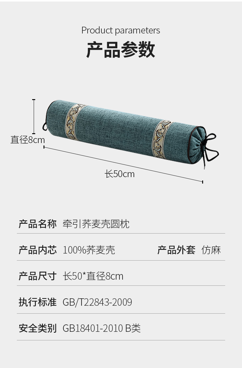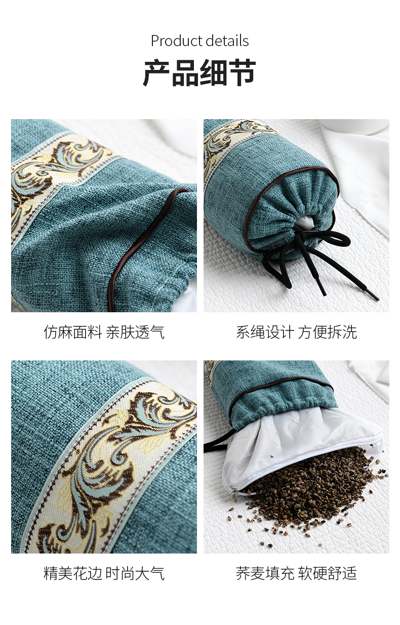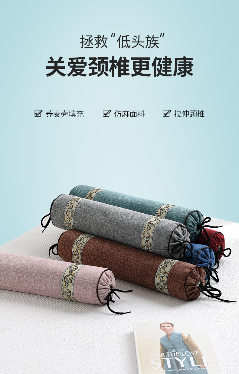 商品名称:(总)仁宇枕业 2026新款仿麻布欧式圆形糖果枕腰枕护颈椎荞麦枕头枕芯
