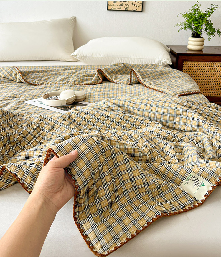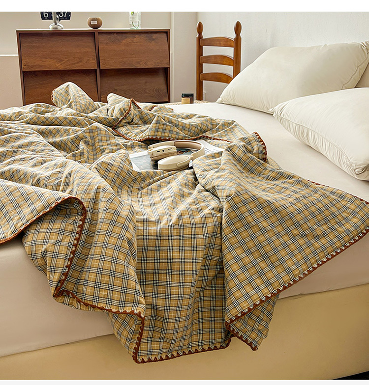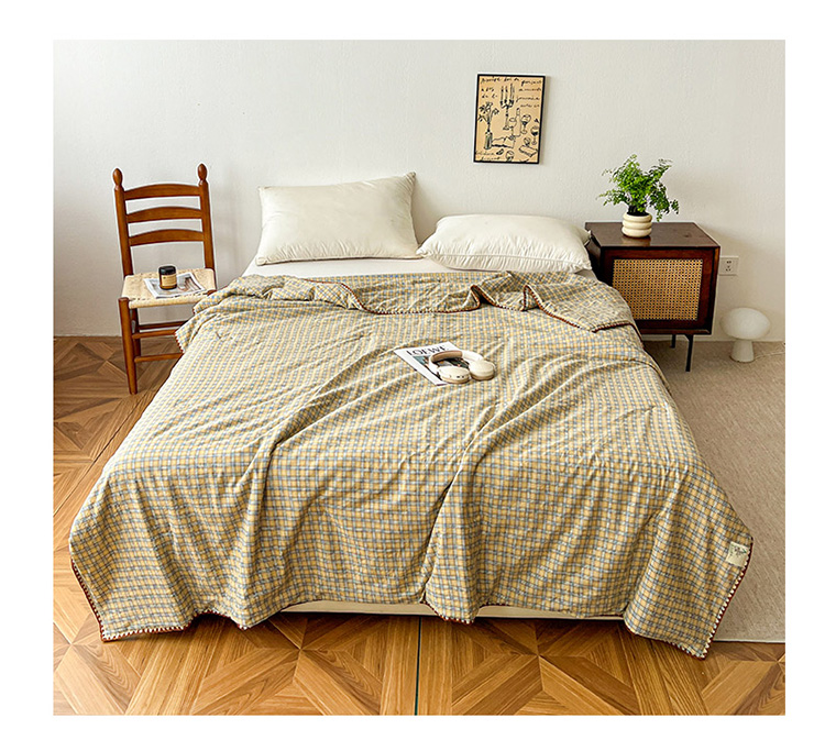 商品名称:(总)逸林家纺2026新款水洗棉夏被无印风格子夏被空调被贝壳绣系列学生单/双人夏被