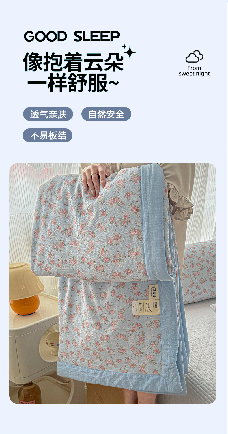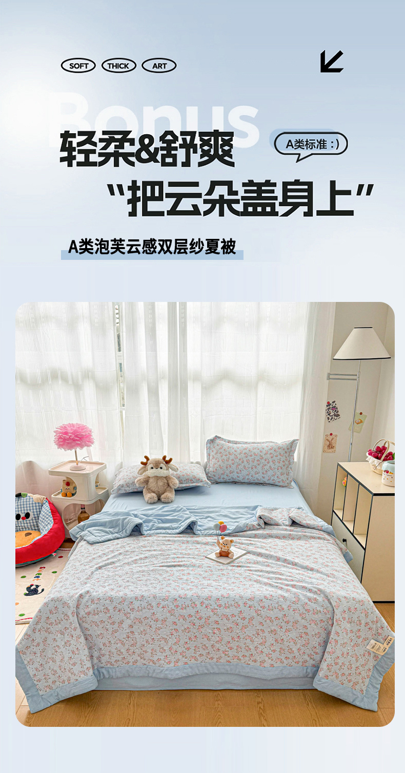 商品名称:(总)蓝冰家纺 2026新款a类泡芙双层纱大豆夏被夏凉被空调被夏被四件套