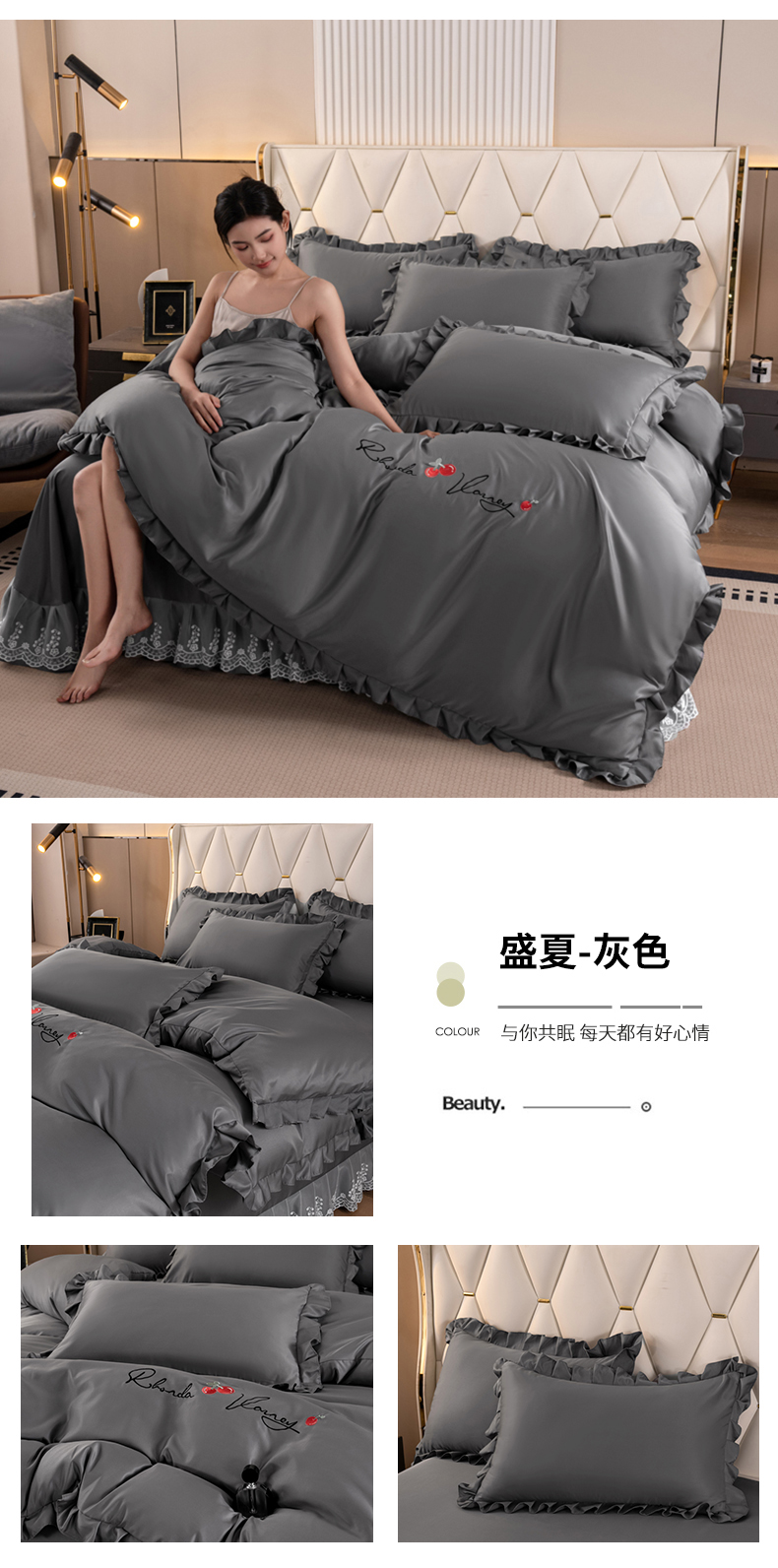 畅畅家纺 2026新款水洗天丝纯色刺绣四件套床品套件 盛夏灰
