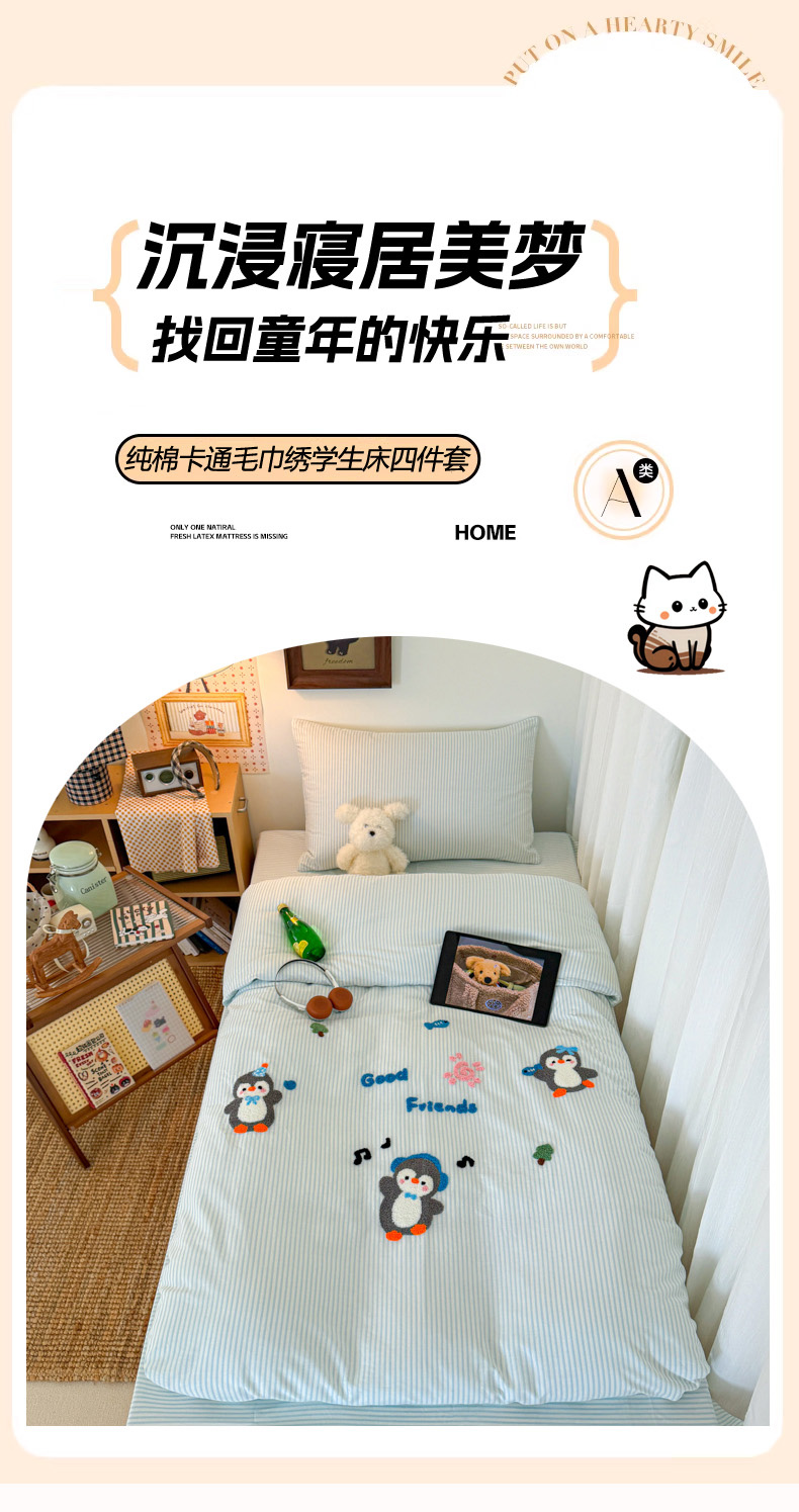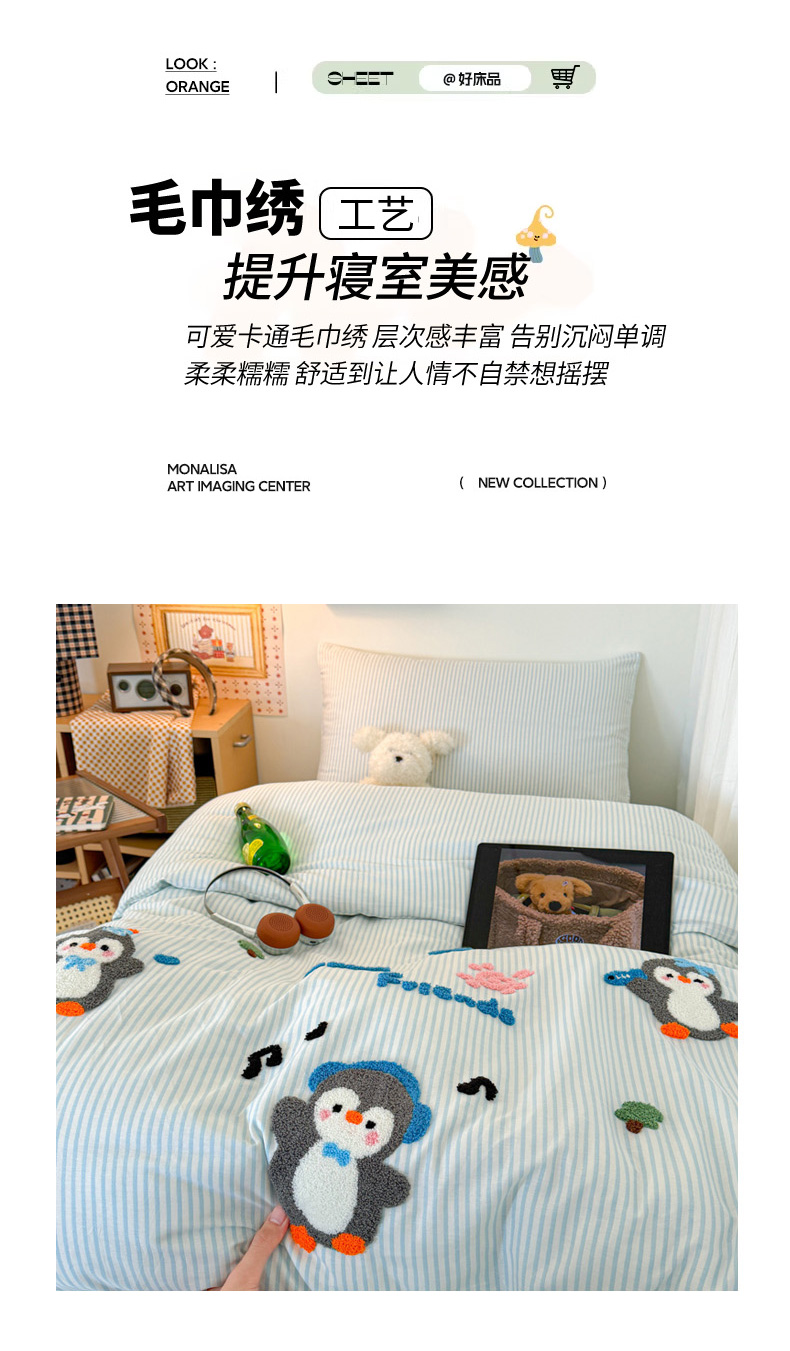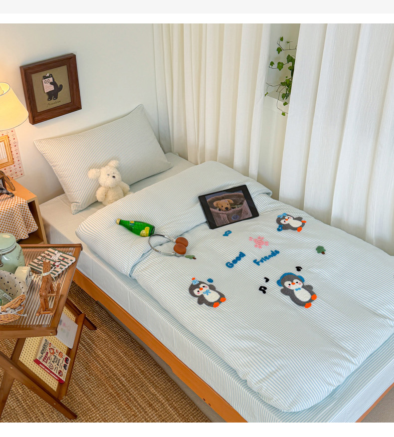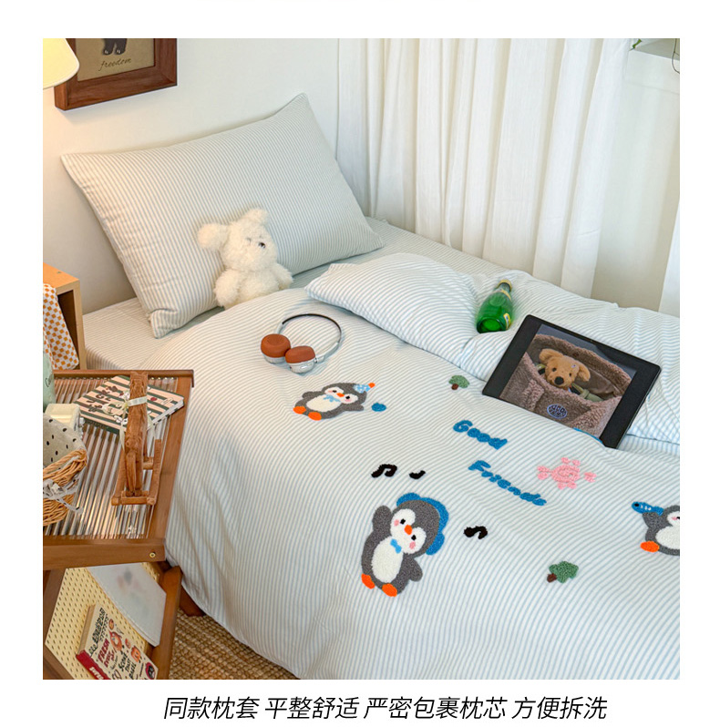 当前位置: 91家纺网 > 商品网购 > 床品套件 > 四件套 > 全棉普通四件套 > 倾慕家纺 2026新款学生纯棉毛巾绣四件套 欢乐企鹅