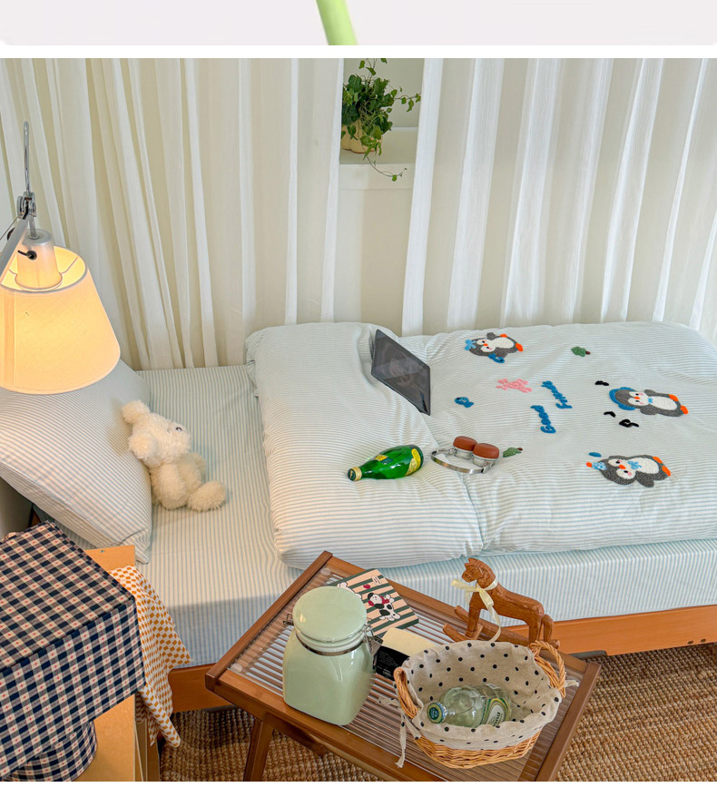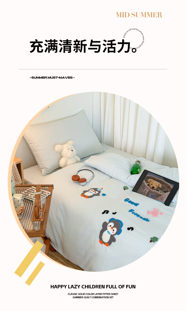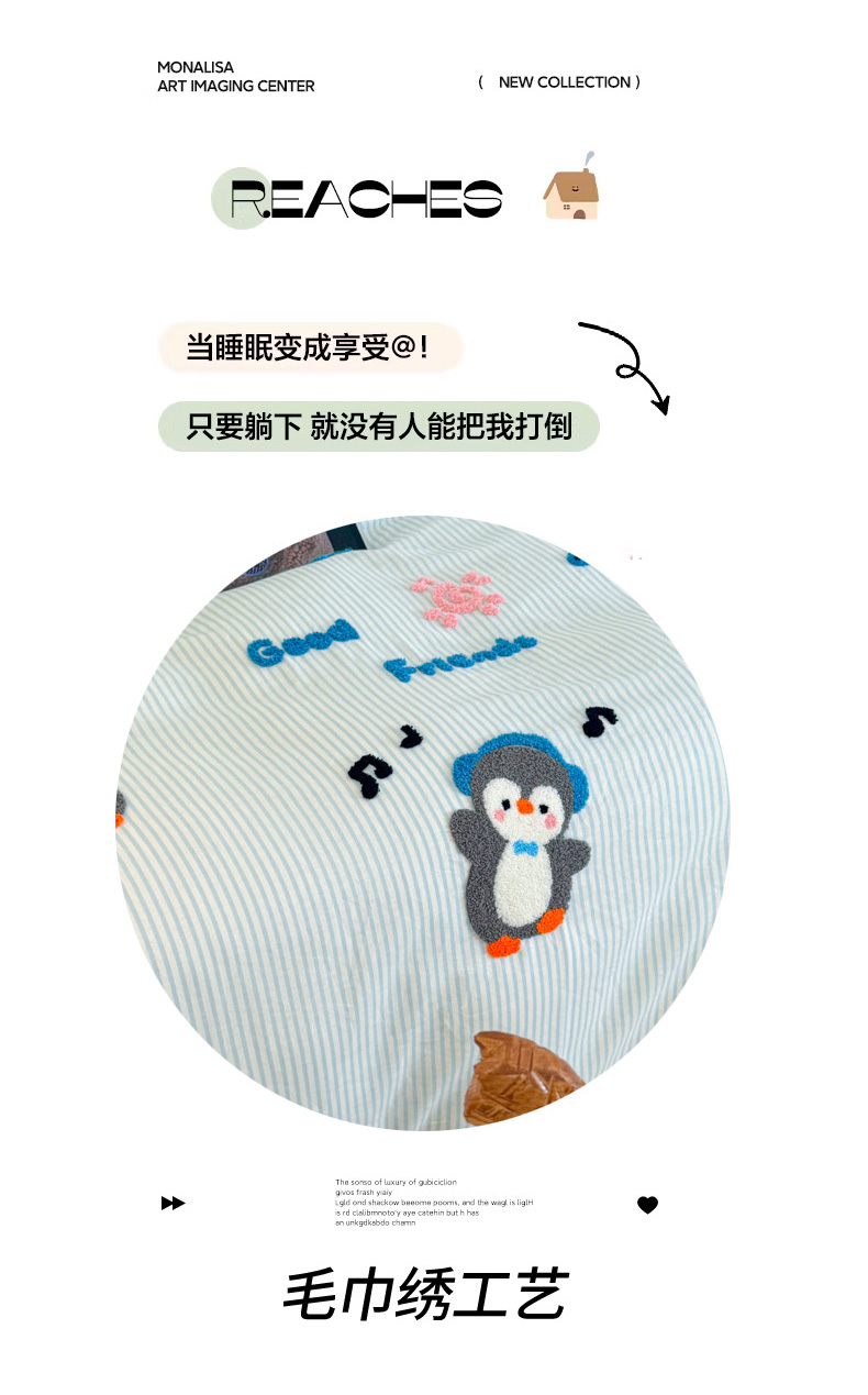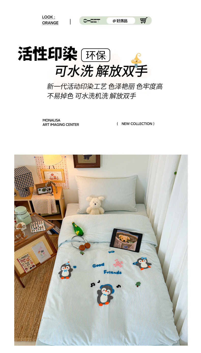 当前位置: 91家纺网 > 商品网购 > 床品套件 > 四件套 > 全棉普通四件套 > 倾慕家纺 2026新款学生纯棉毛巾绣四件套 欢乐企鹅