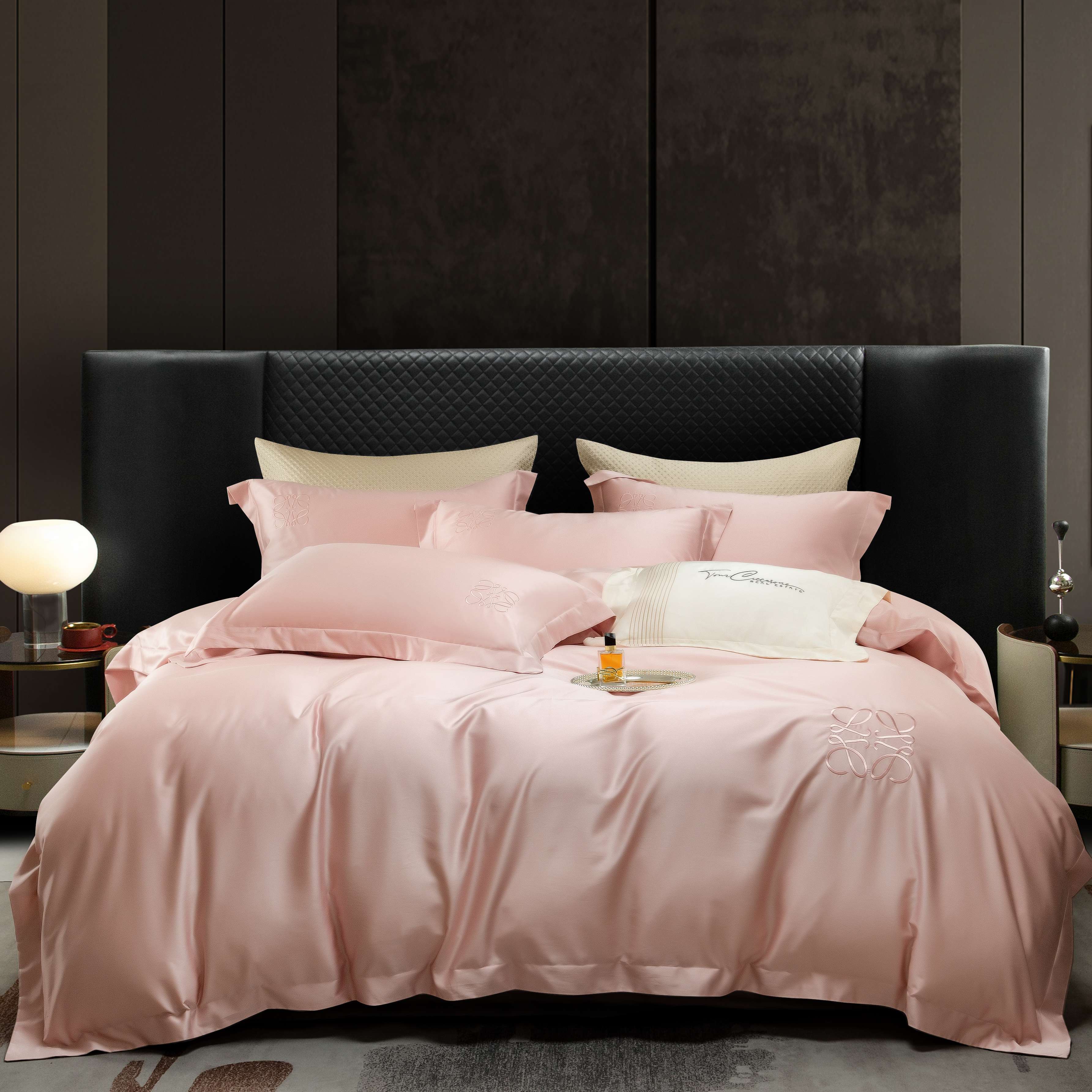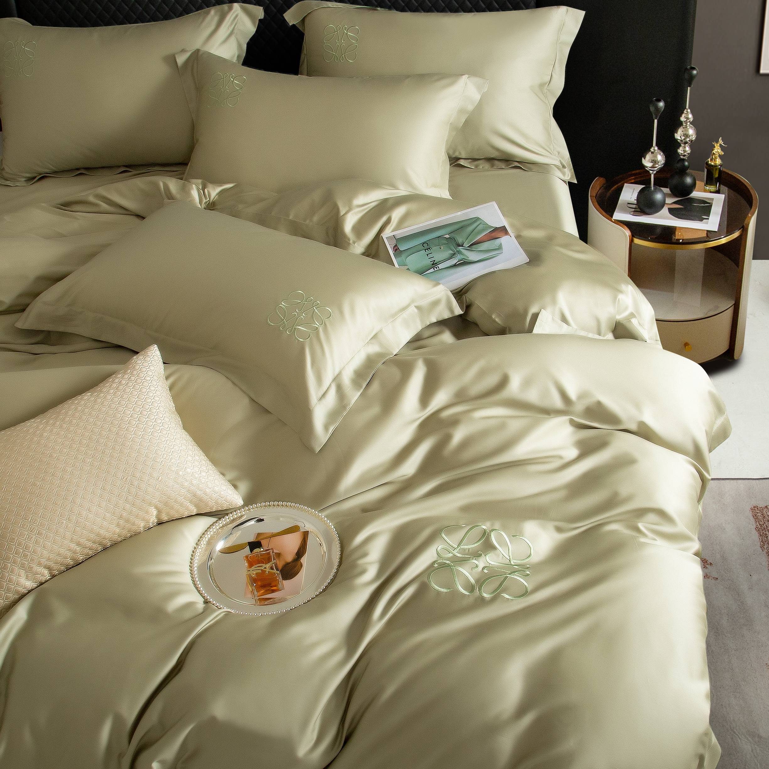 (总)莱豫家纺 2026春夏新款100s兰精天丝绣花四件套,罗意威粉玉,罗意威粉,罗意威黄,罗意威抹茶绿,罗意威水蓝,罗意威紫