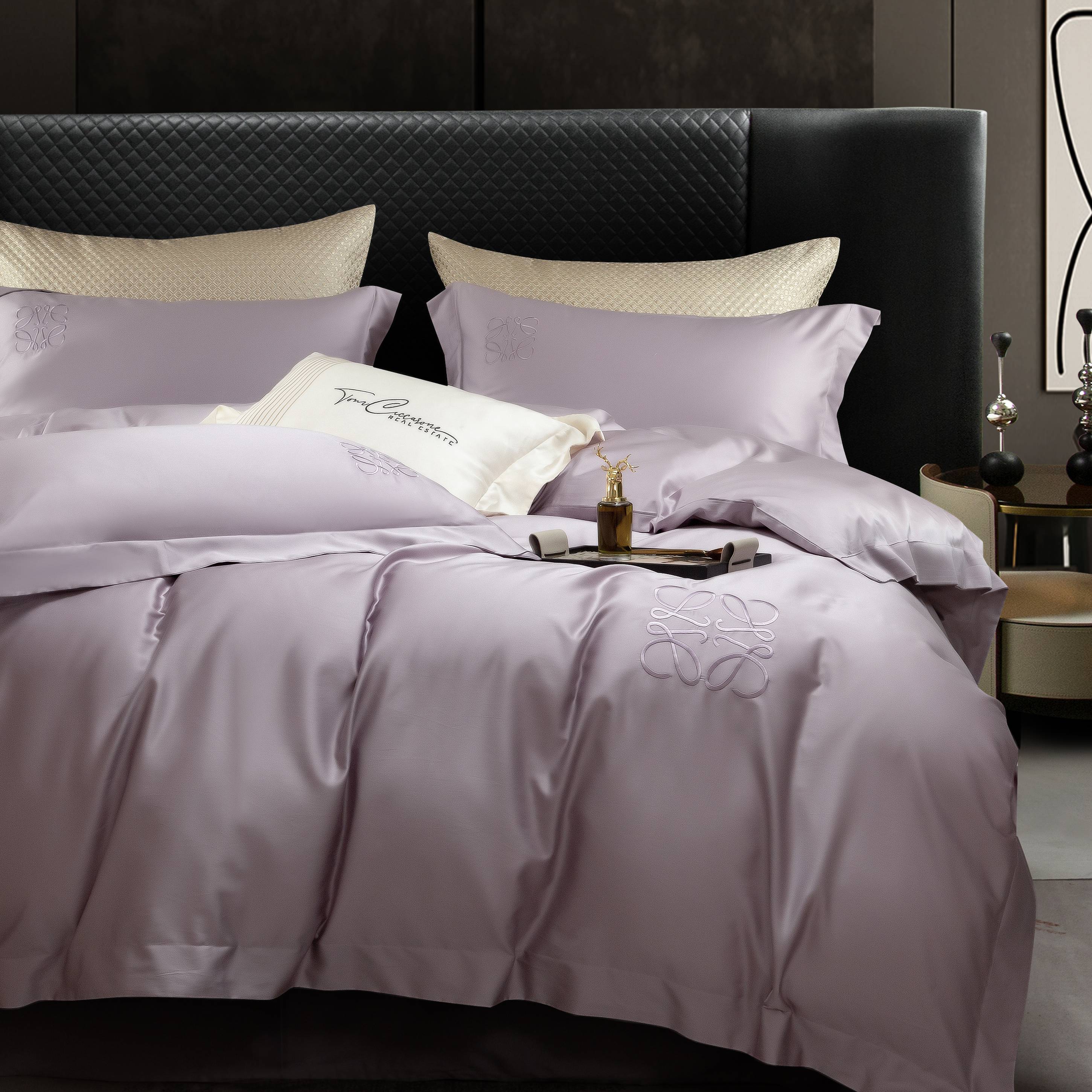 莱豫家纺 2026春夏新款100s兰精天丝绣花四件套 罗意威紫