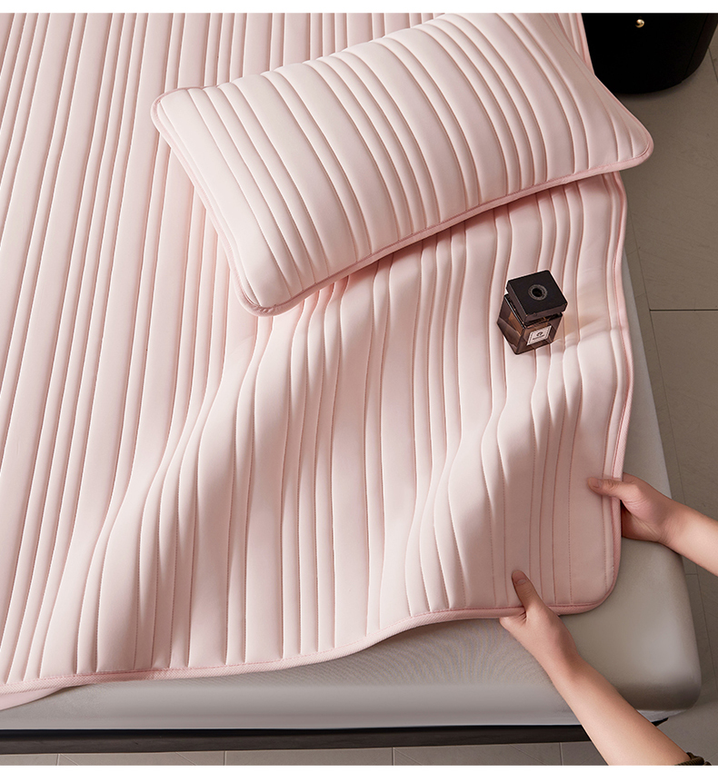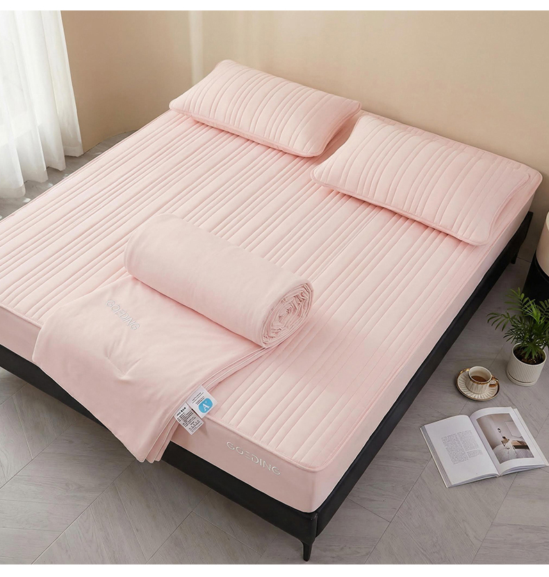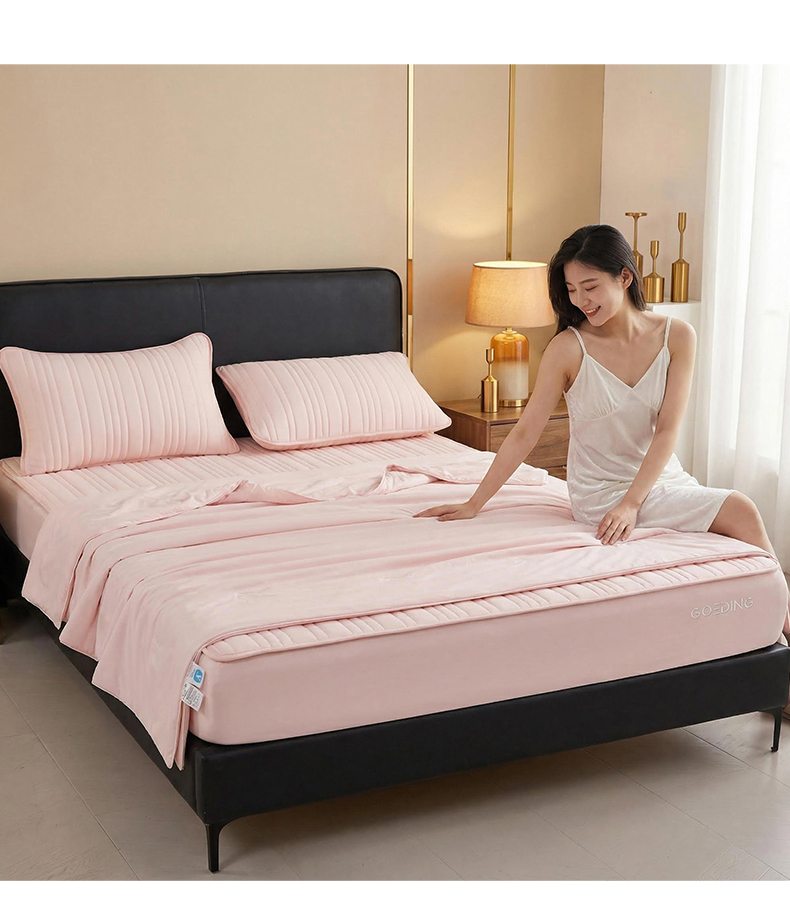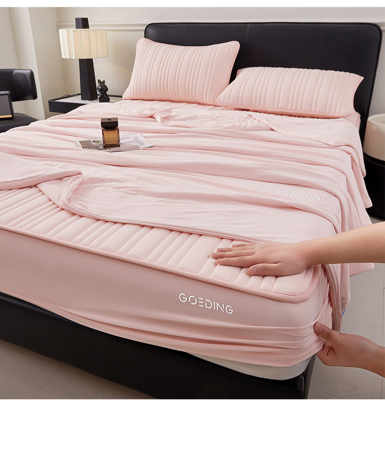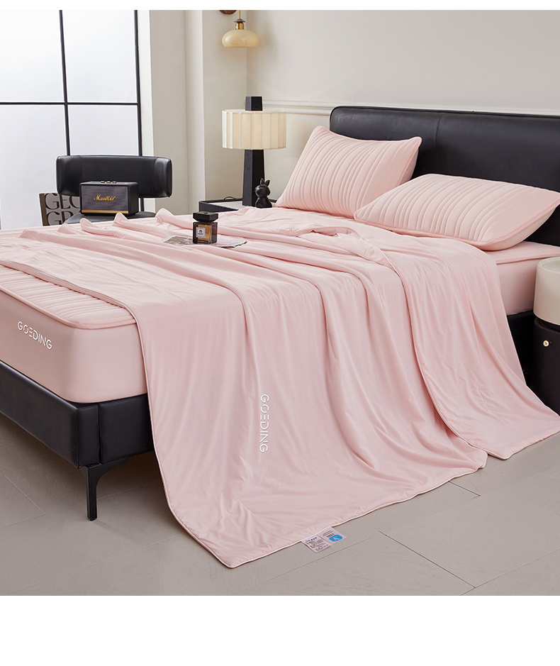 • 91家纺网 家纺一手货源 找家纺 雯豆家纺 2026春夏新款氨纶凉感丝床笠夏被四件套0.28凉感值空调被子被芯 知夏-粉
