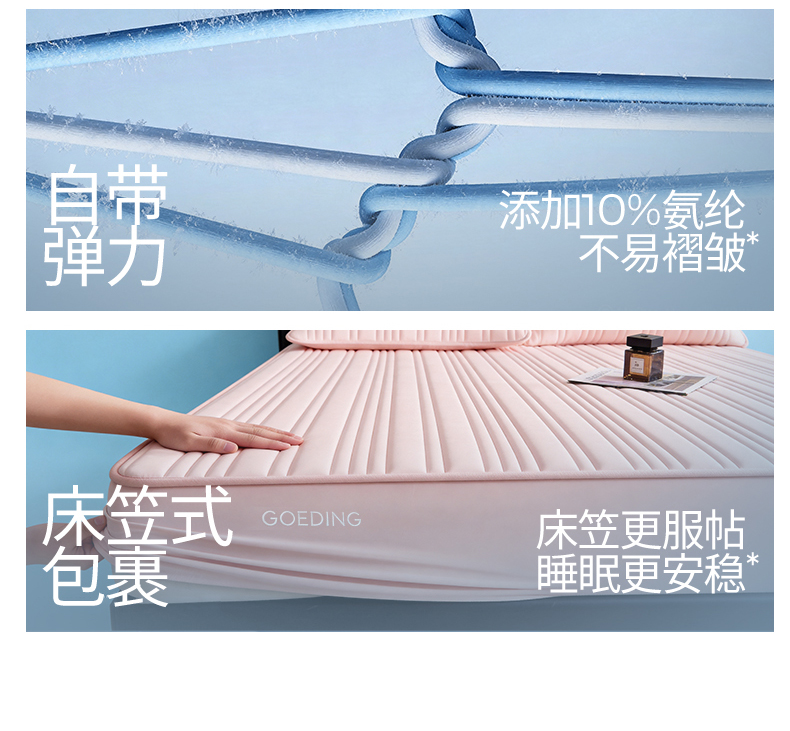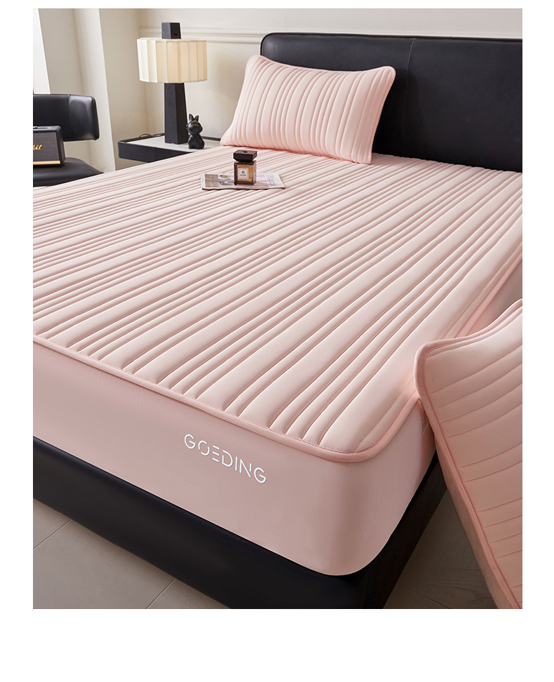 (总)雯豆家纺 2026春夏新品氨纶凉感床笠夹棉款床笠三件套床垫保护套,知夏-粉,知夏-黛蓝,知夏-浅灰,知夏-青草绿,知夏-深灰,知夏-水蓝,知夏-水绿