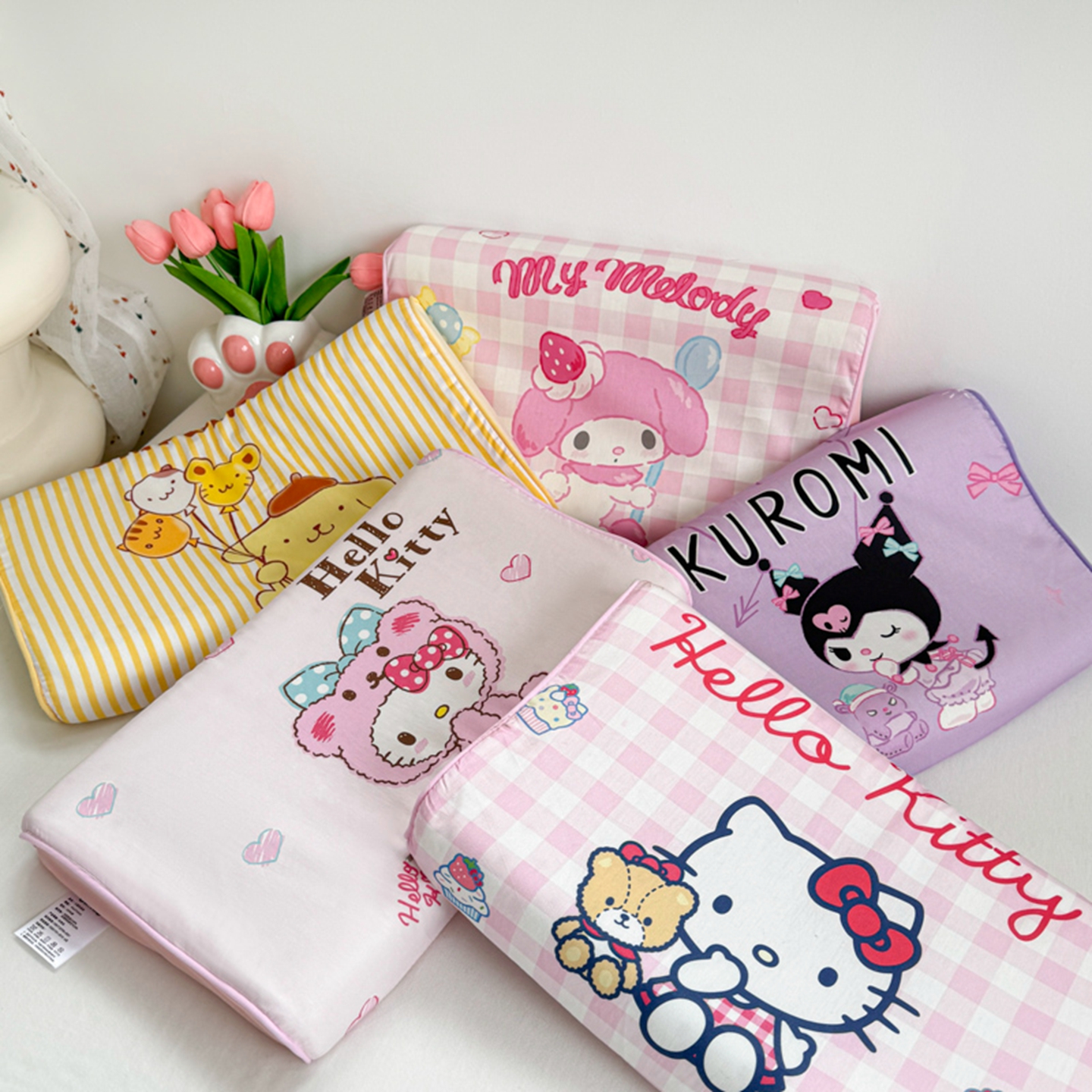 (总)花满路 2026新款卡通儿童三丽鸥枕头枕芯,组合图仅供展示不可下单,粉粉美乐蒂,粉格kt,蓝格大耳狗,奶黄布丁狗,浅蓝kitty,紫色库洛米
