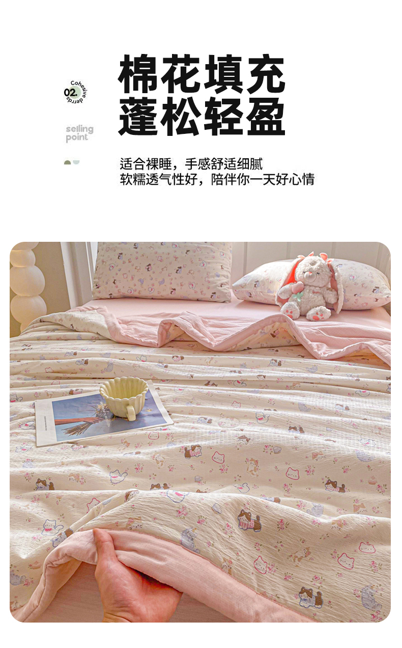 (总)爱屋及屋 2026新款小清新双层纱宽包边棉花被夏凉被空调被夏被,春日小猫,动感星星,繁花-蓝,花影,花之兔,蓝点点,蓝色小丫,萌宠集,奶油块块,苹果猫,像素KT,小熊猫,星星小马,云感-蓝,治愈小猫