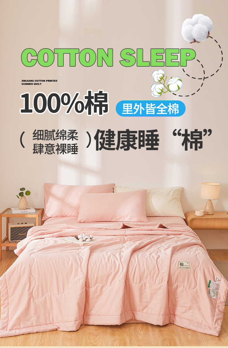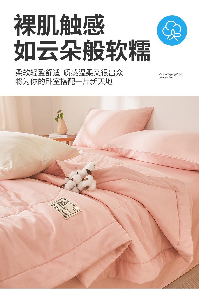 • 91家纺网 家纺一手货源 找家纺 晓时候 2026新款纯色100%里外全棉新疆棉花被纯棉夏凉被空调被夏被四件套被子被芯 里外全棉-珊瑚粉