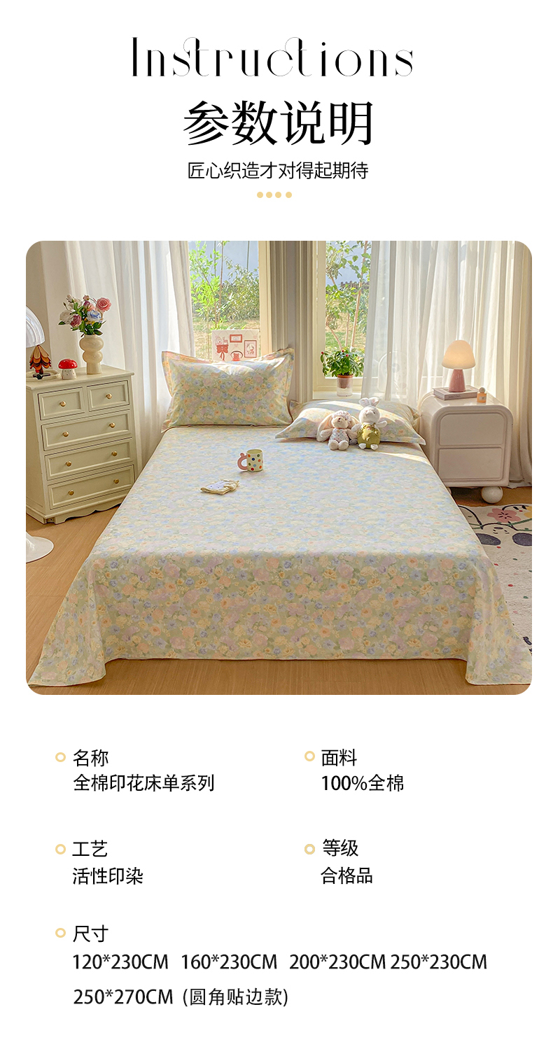 (总)女子家纺 2026新款全棉纯棉印花花卉款床单单品床单单件,安暖如夏,京都花园,花丛甜崽,荷叶邮差,复古诗笺,动物花园,春游手记,花仙兔兔,蓝沫,洛克庄园红,玫瑰小狗,妙趣乐园,普罗旺斯,俏佳人,青绿银杏,柔色花笺,苏糖粉,苏糖咖,甜蜜纪念日,童话花町,微花耳耳粉,微花耳耳蓝,温柔花朵熊,芜晴花紫,星辰蔷薇,徐徐花开,油画弦音,玉笛花间,栀子花语,自然手记粉