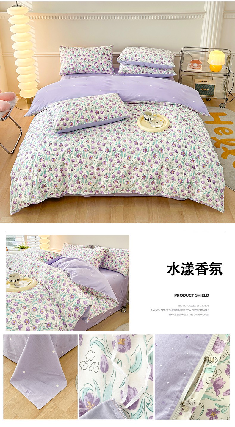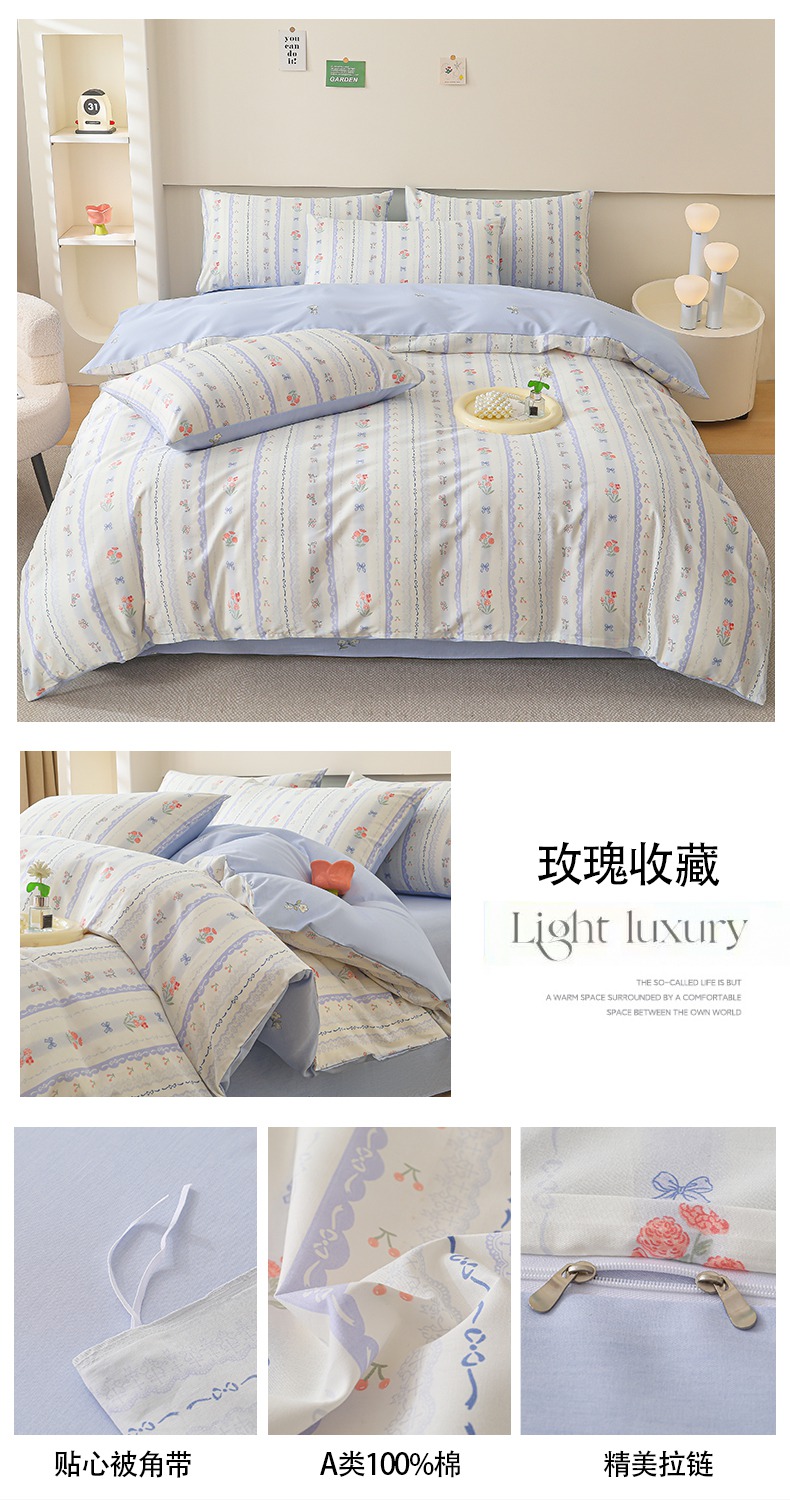 当前位置: 91家纺网 > 商品网购 > 床品套件 > 四件套 > 全棉普通四件套 > 宇彬家纺 2026直播新款13372A类全棉纯棉印花床单床笠款四件套和单被套喷气清新简约 坠入爱河