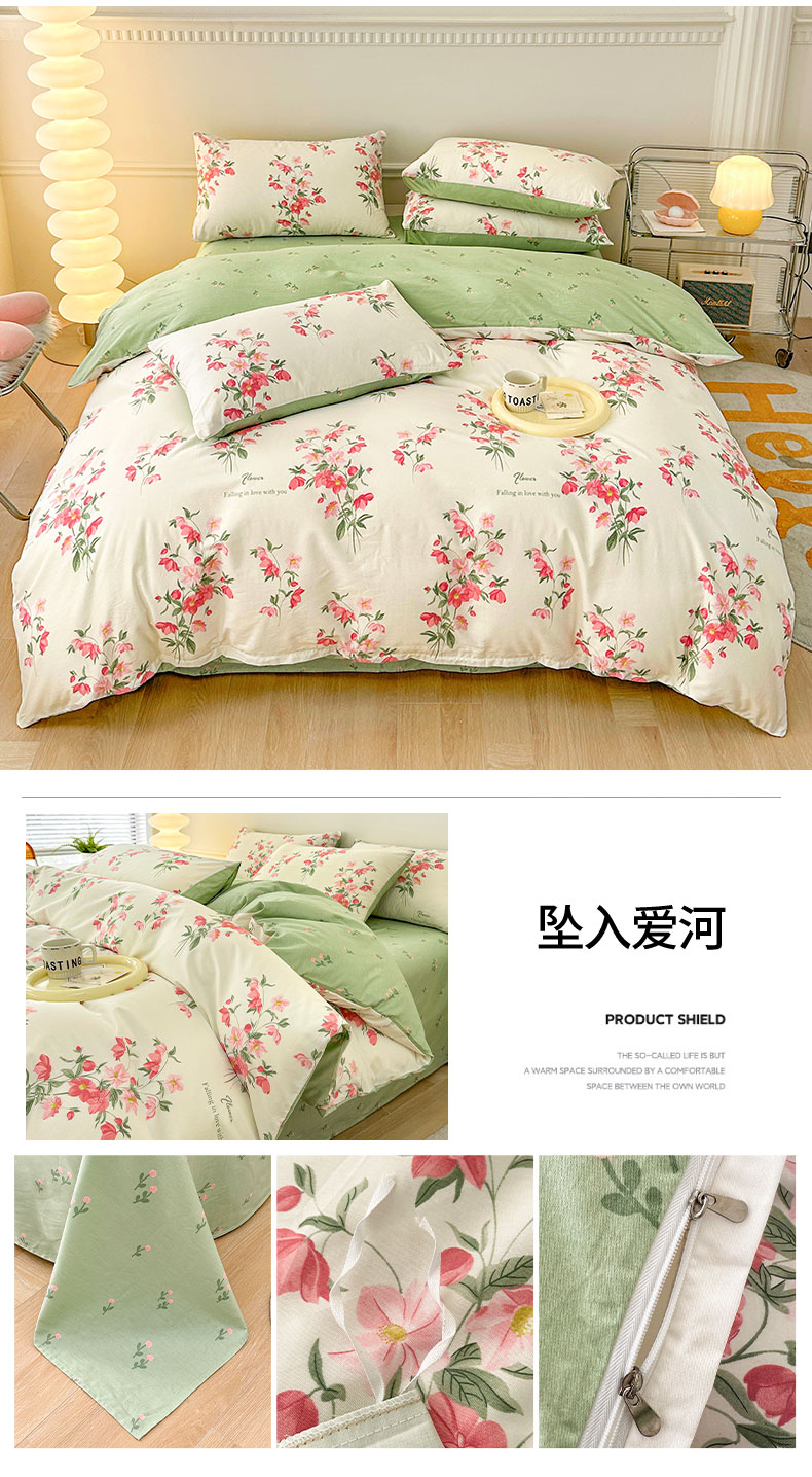 当前位置: 91家纺网 > 商品网购 > 床品套件 > 四件套 > 全棉普通四件套 > 宇彬家纺 2026直播新款13372A类全棉纯棉印花床单床笠款四件套和单被套喷气清新简约 熊猫