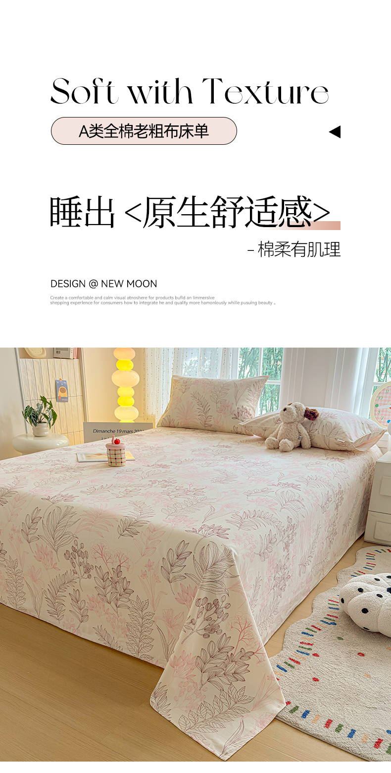 慕梵家居 2026春夏新款全棉纯棉老粗布单床单 床单单件 繁花粉