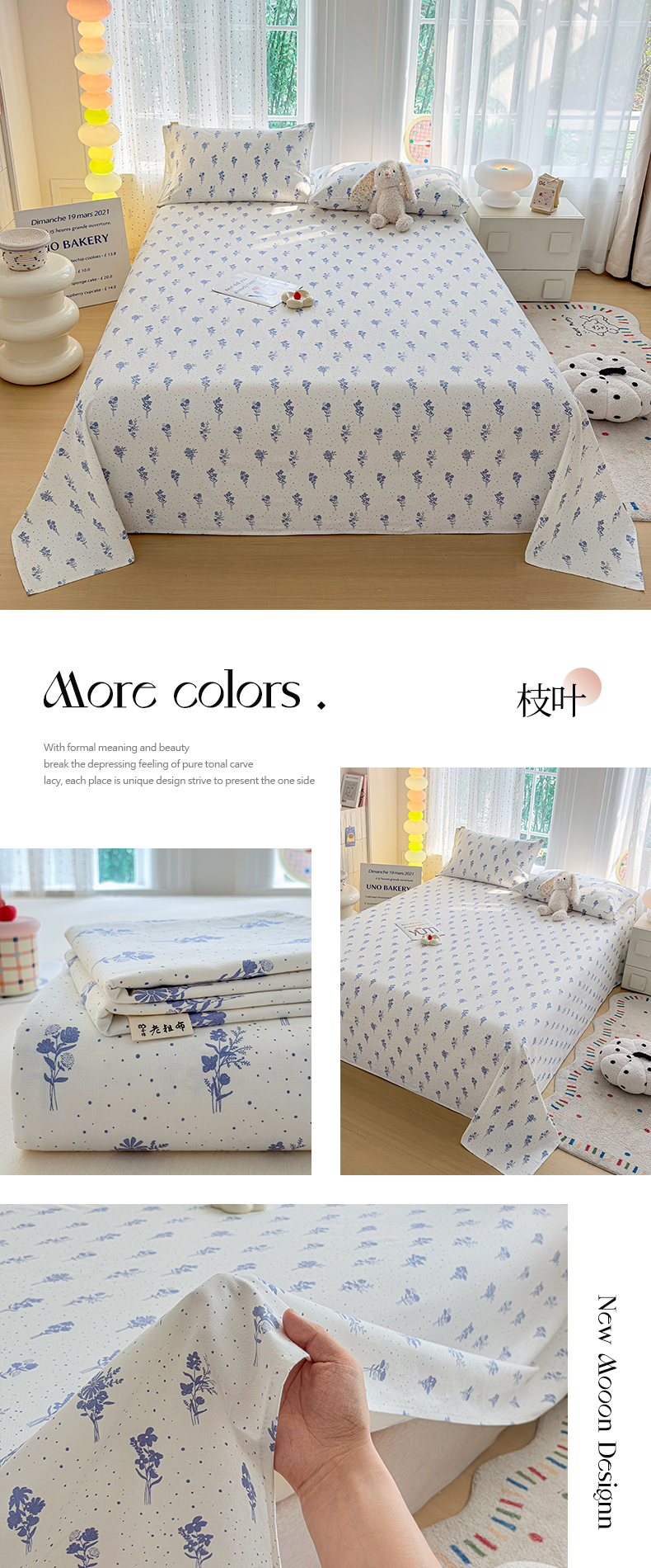 • 91家纺网 家纺一手货源 找家纺 慕梵家居 2026春夏新款全棉纯棉老粗布单床单 床单单件 繁花粉