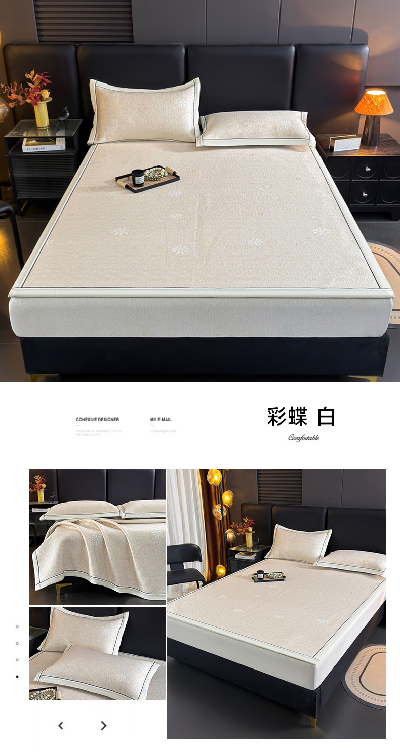 牵梦萦家纺 2026新款立体浮雕压花工艺豆豆凉席三件套-平铺款 彩蝶-白