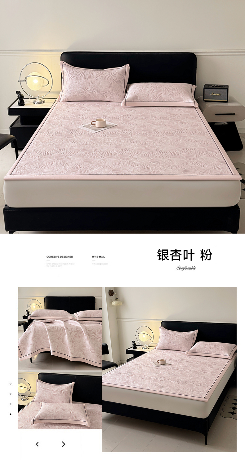 牵梦萦家纺 2026新款立体浮雕压花工艺豆豆凉席三件套-平铺款 银杏叶-粉