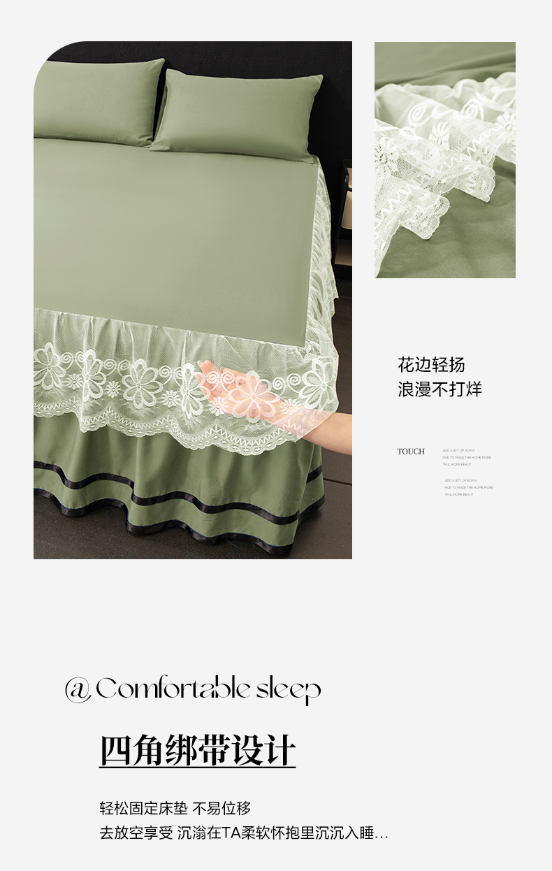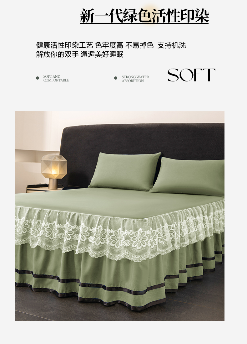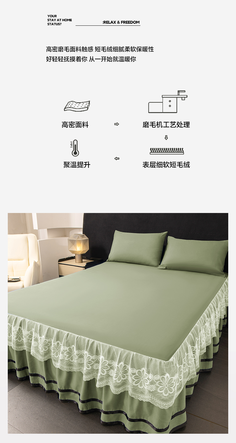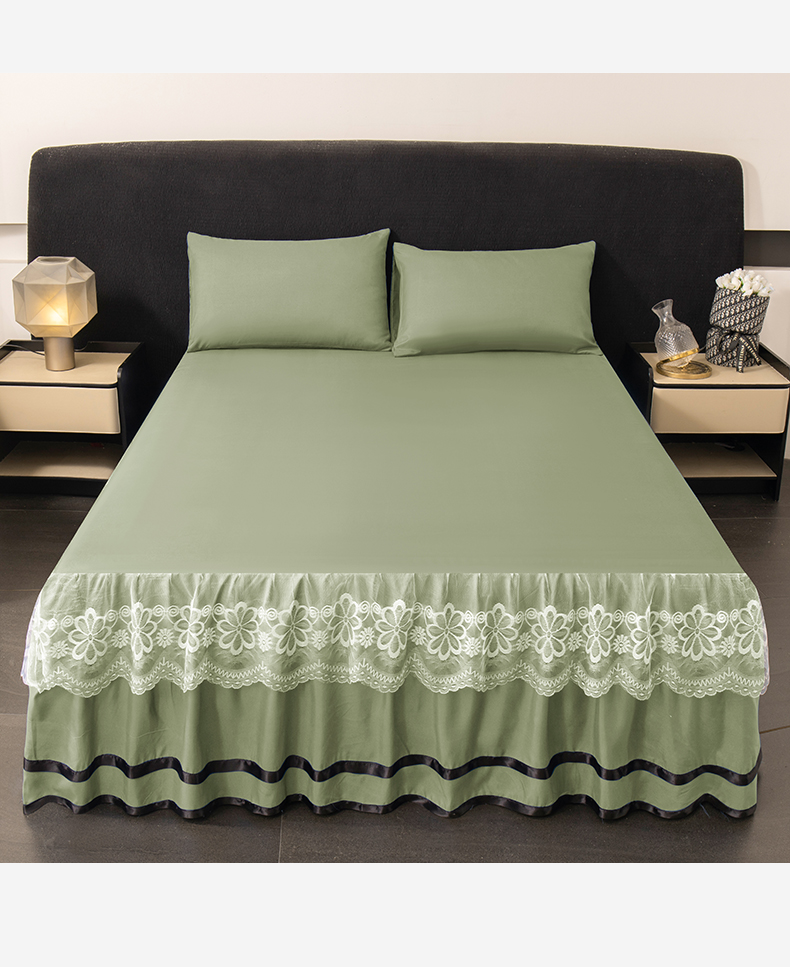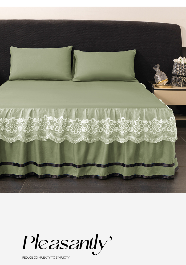 米瑞娜 2026新款磨毛双层蕾丝花边床裙跨境全尺寸系列 果绿