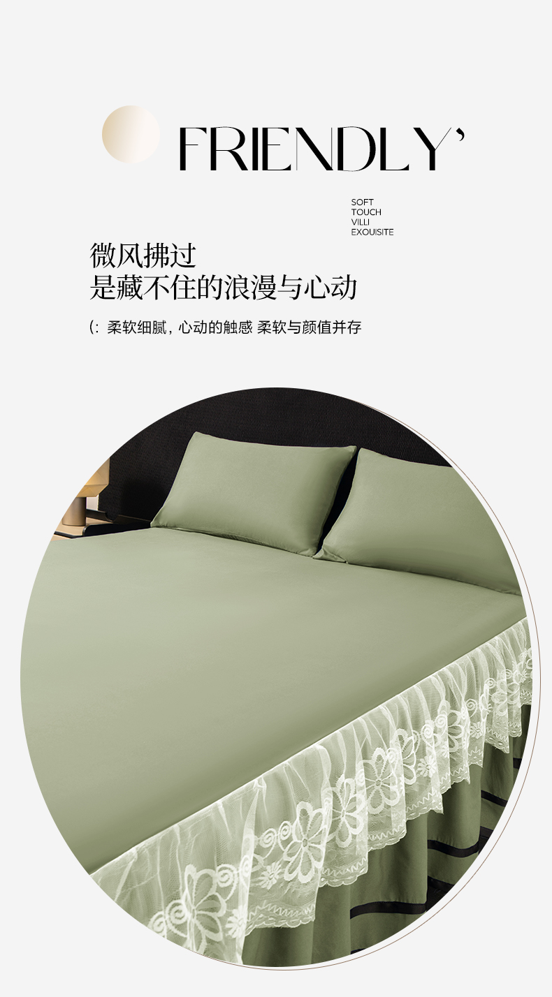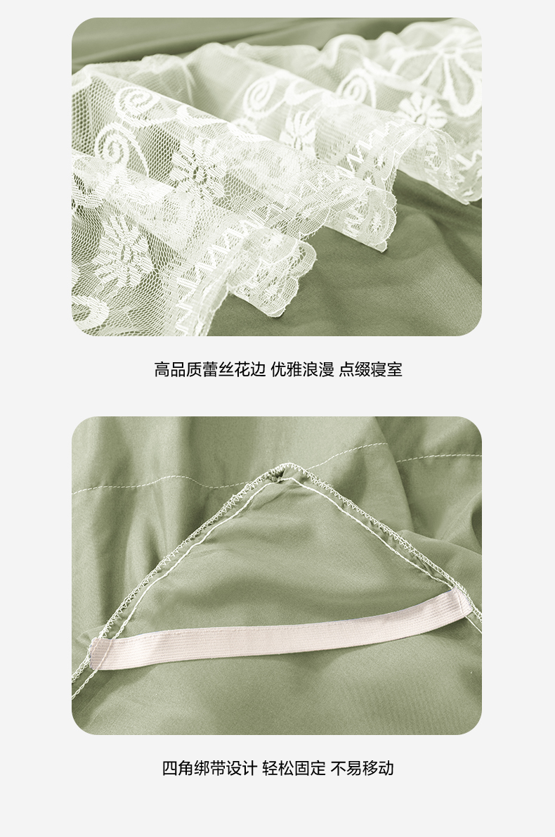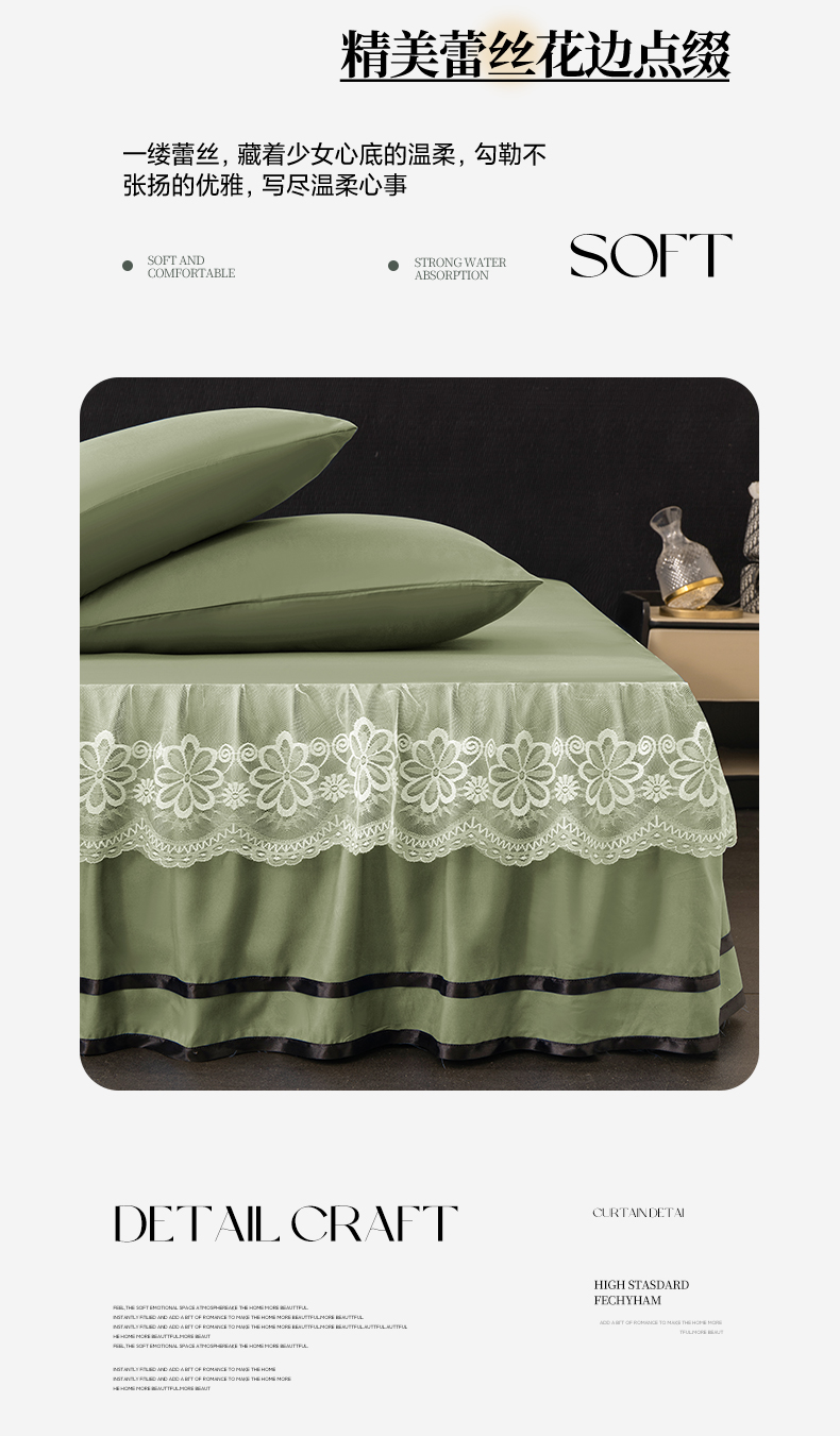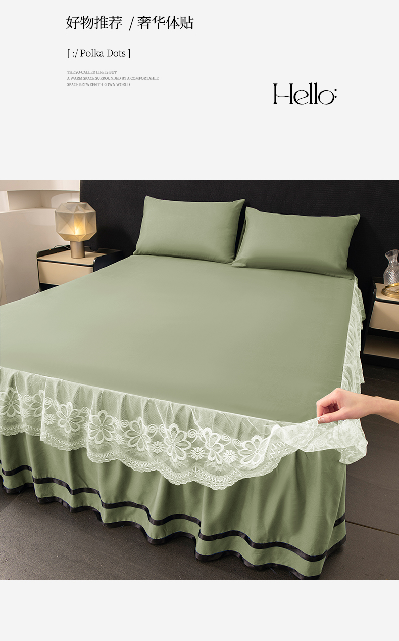 米瑞娜 2026新款磨毛双层蕾丝花边床裙跨境全尺寸系列 果绿