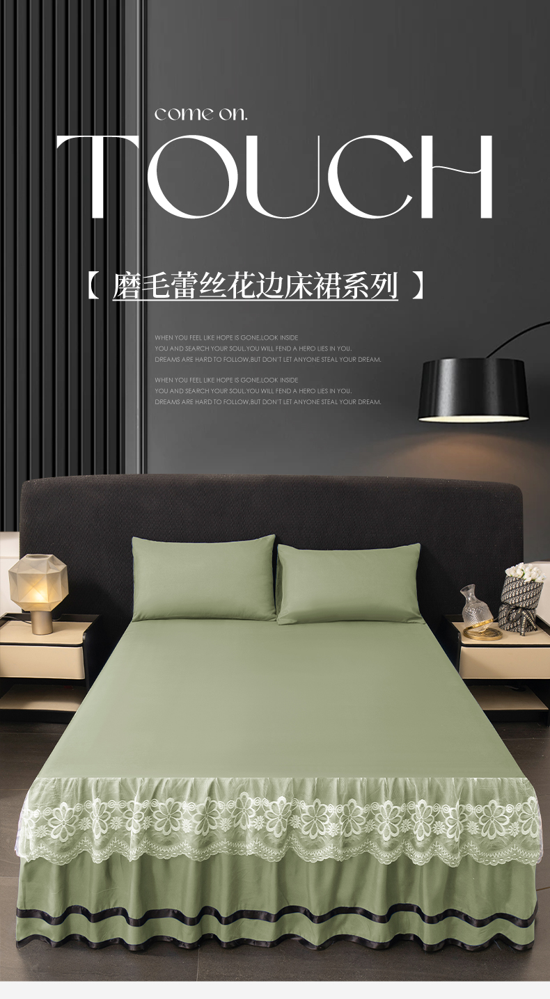 当前位置: 91家纺网 > 商品网购 > 床上用品 > 床裙 > 米瑞娜 2026新款磨毛双层蕾丝花边床裙跨境全尺寸系列 果绿