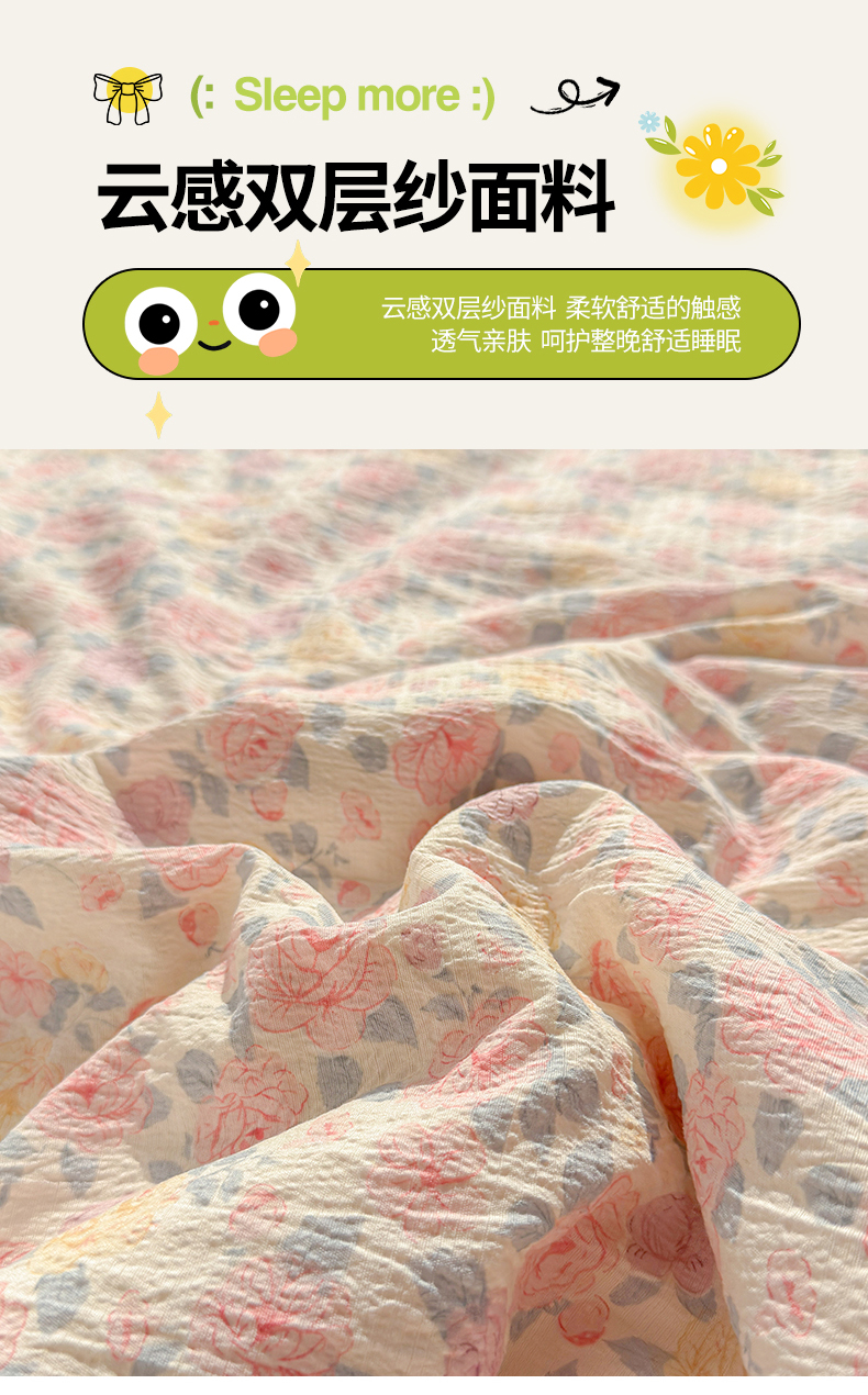 • 91家纺网 家纺一手货源 找家纺 晓时候 2026新款双层纱印花夏被床盖四件套新疆棉花被夏凉被空调被单夏被 繁花