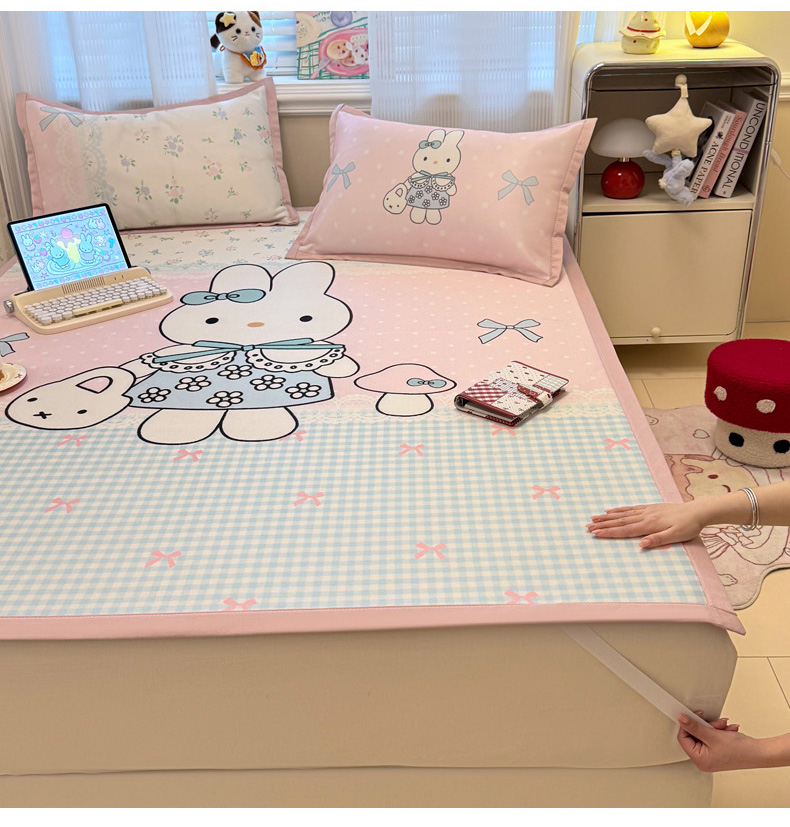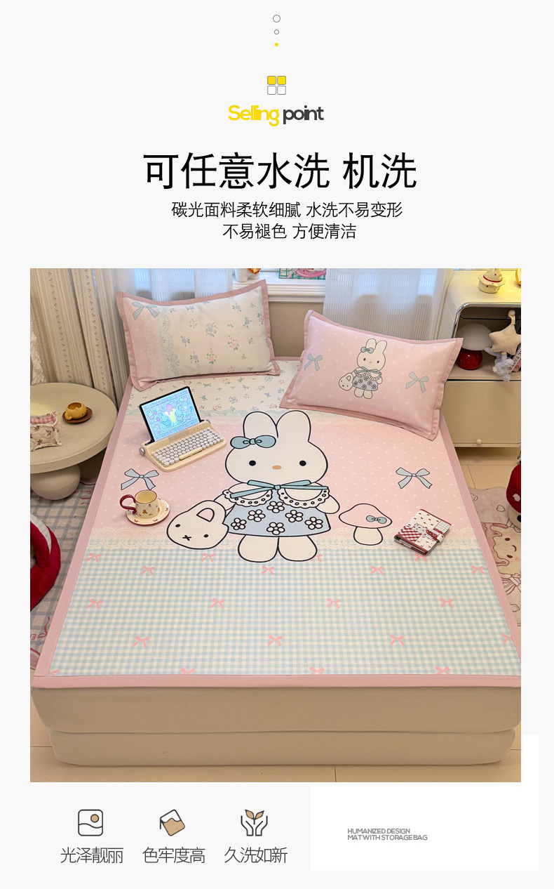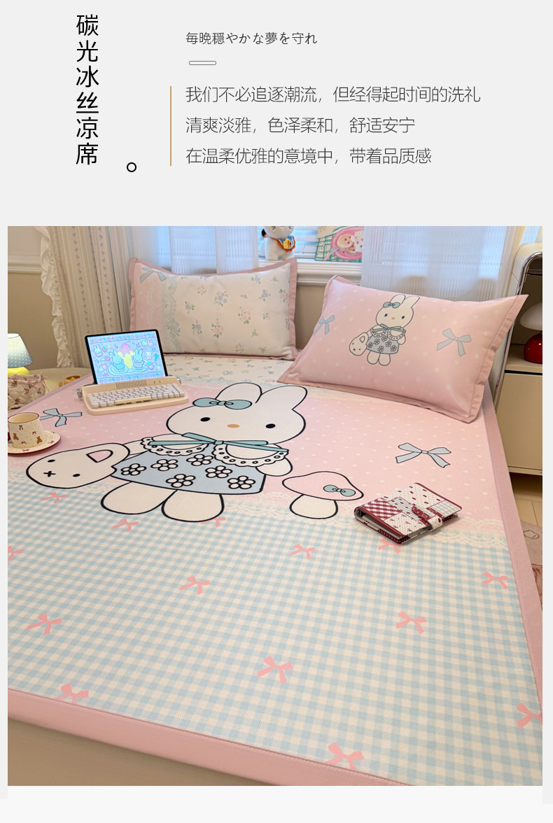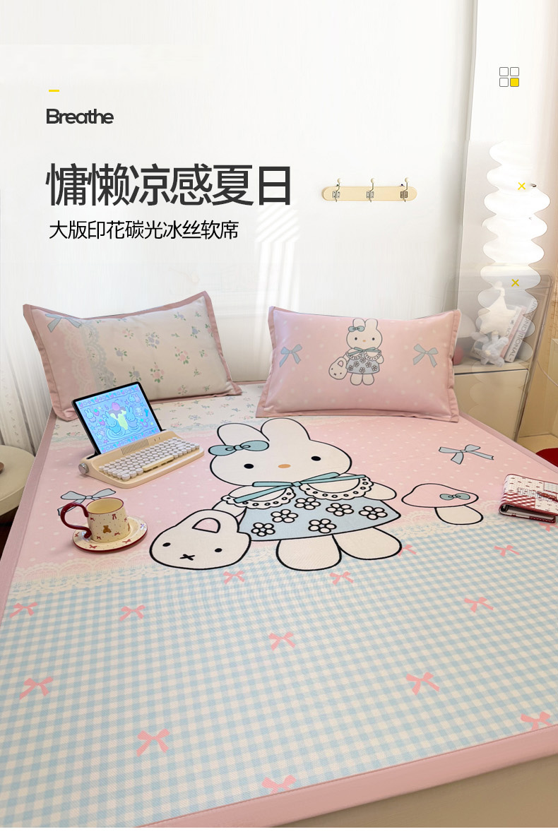商品名称:柒月家居 2026新款大版印花碳光冰丝席床席款凉席 蘑菇小兔