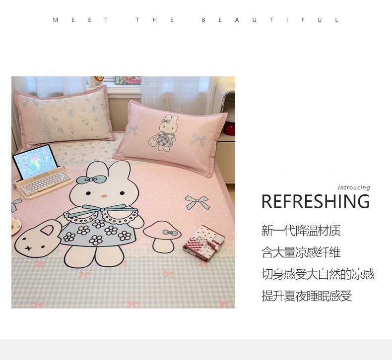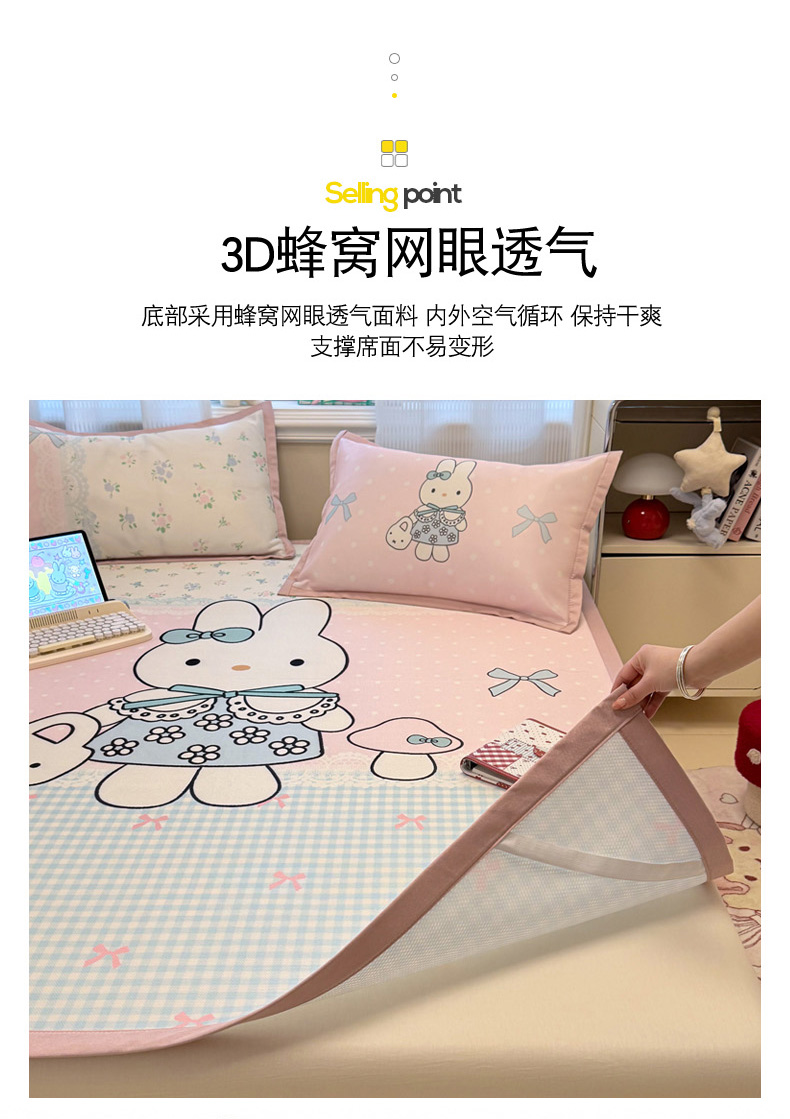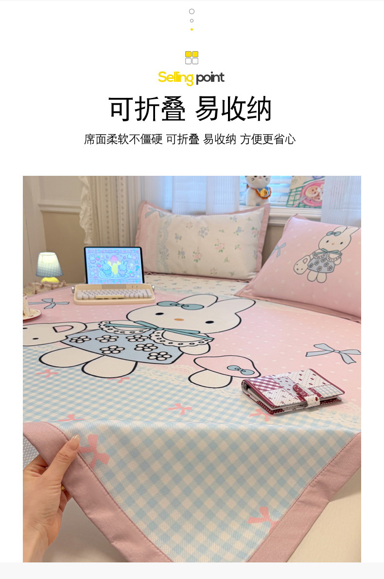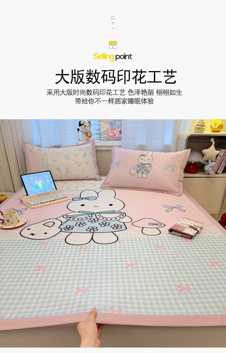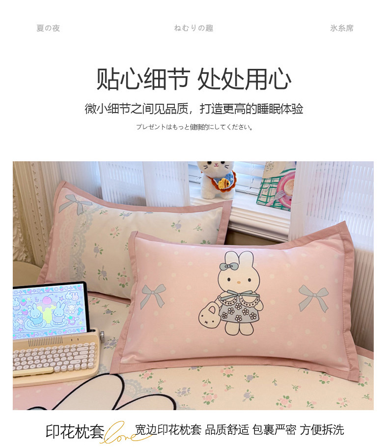 商品名称:柒月家居 2026新款大版印花碳光冰丝席床席款凉席 蘑菇小兔