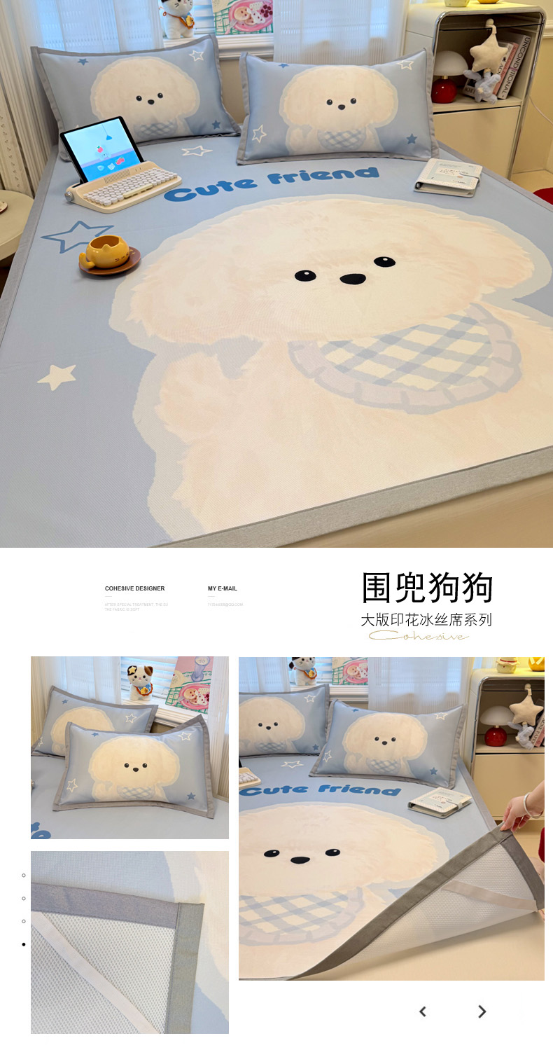 (总)柒月家居 2026新款大版印花碳光冰丝席床席款凉席,围兜狗狗,斑点熊,茶茶蓝猫,蛋糕派对,蛋糕汪汪,动物世界,房子小狗,卷卷白狗,满天星辰,猫猫小窝,猫咪伙伴,萌宝,萌系女孩,蘑菇小兔,晚安熊,汪汪乐园,星星之愿,熊猫宝贝,雪纳瑞狗