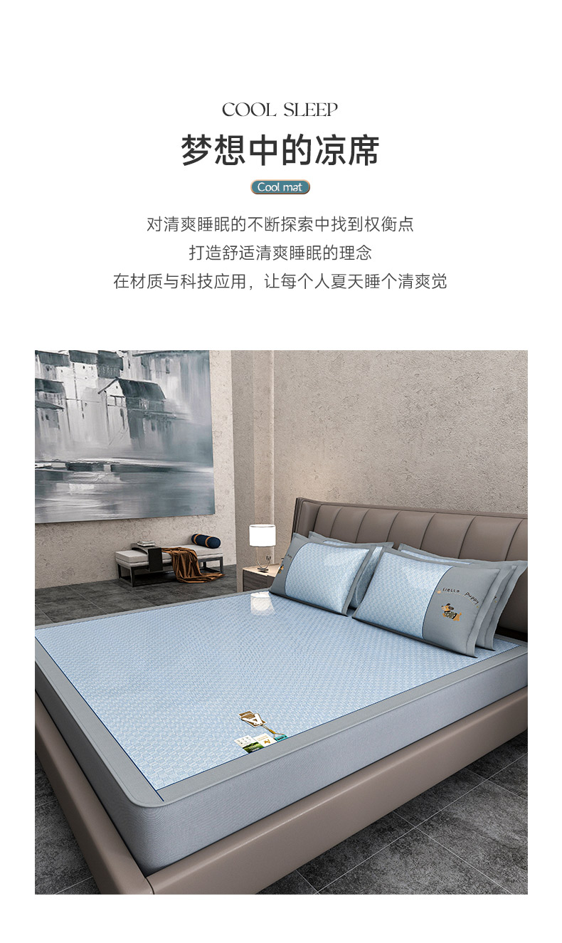 (总)小牛席业 2026新款小清新凉感冰丝席席子凉席,粉色,灰色,蓝色,香槟