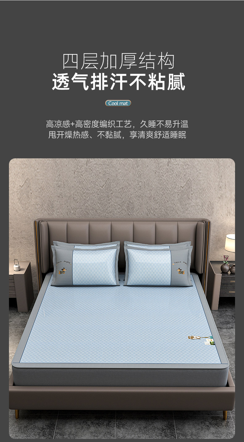 (总)小牛席业 2026新款熊猫格纹提花冰丝席席子凉席-(床笠款)凉席藤席冰藤席冰丝席凉感空调席,粉色,灰色,蓝色,抹茶,香槟