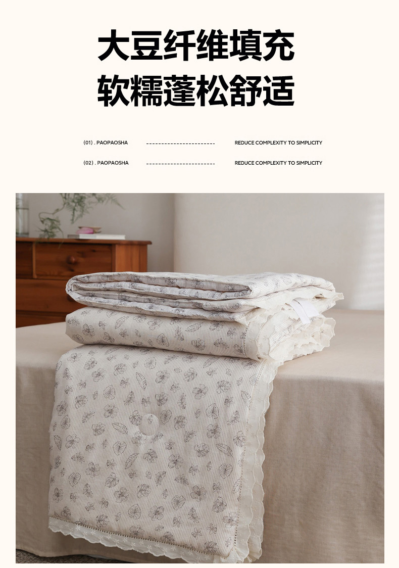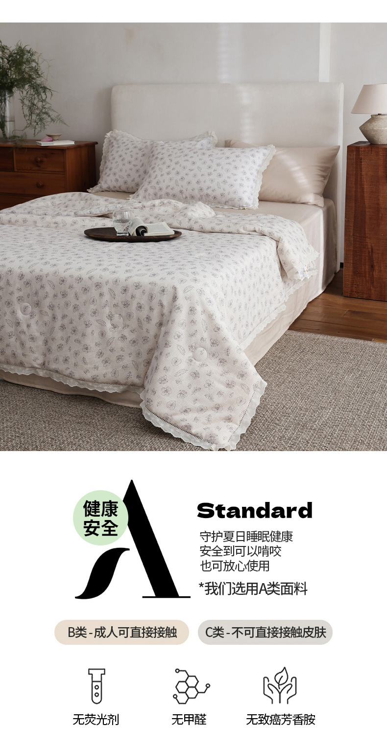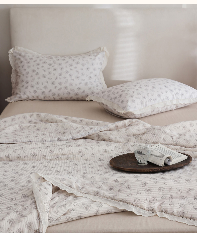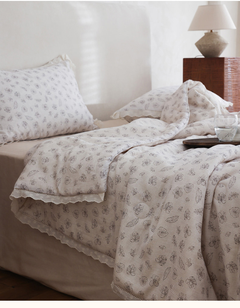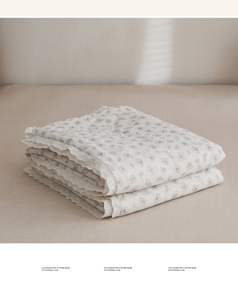 商品名称:万盛家纺 2026新款全棉双层纱花边印花夏被空调被夏凉被 素颜