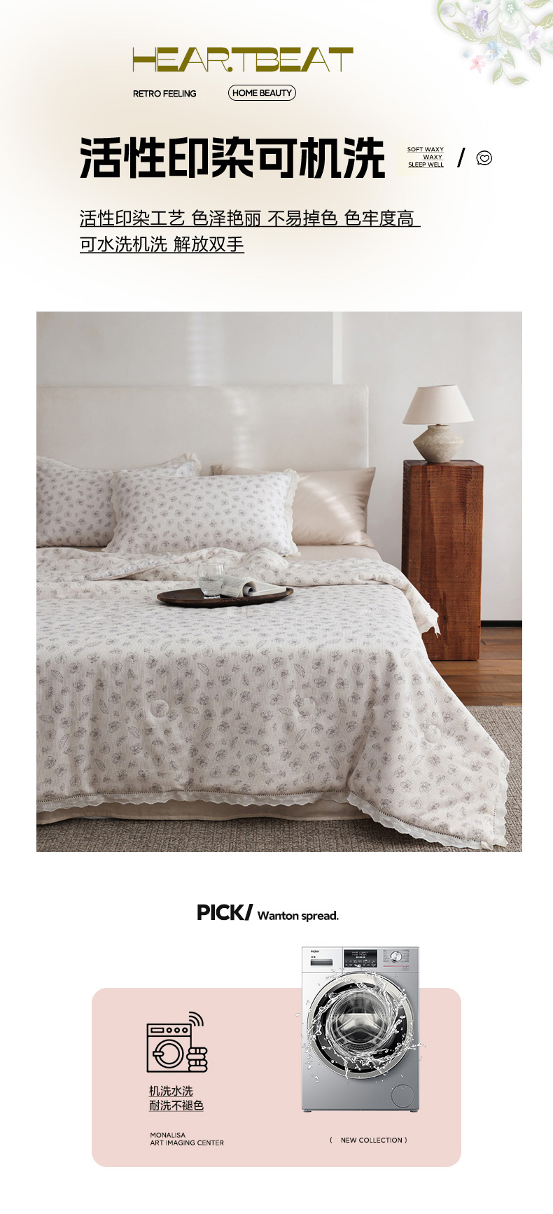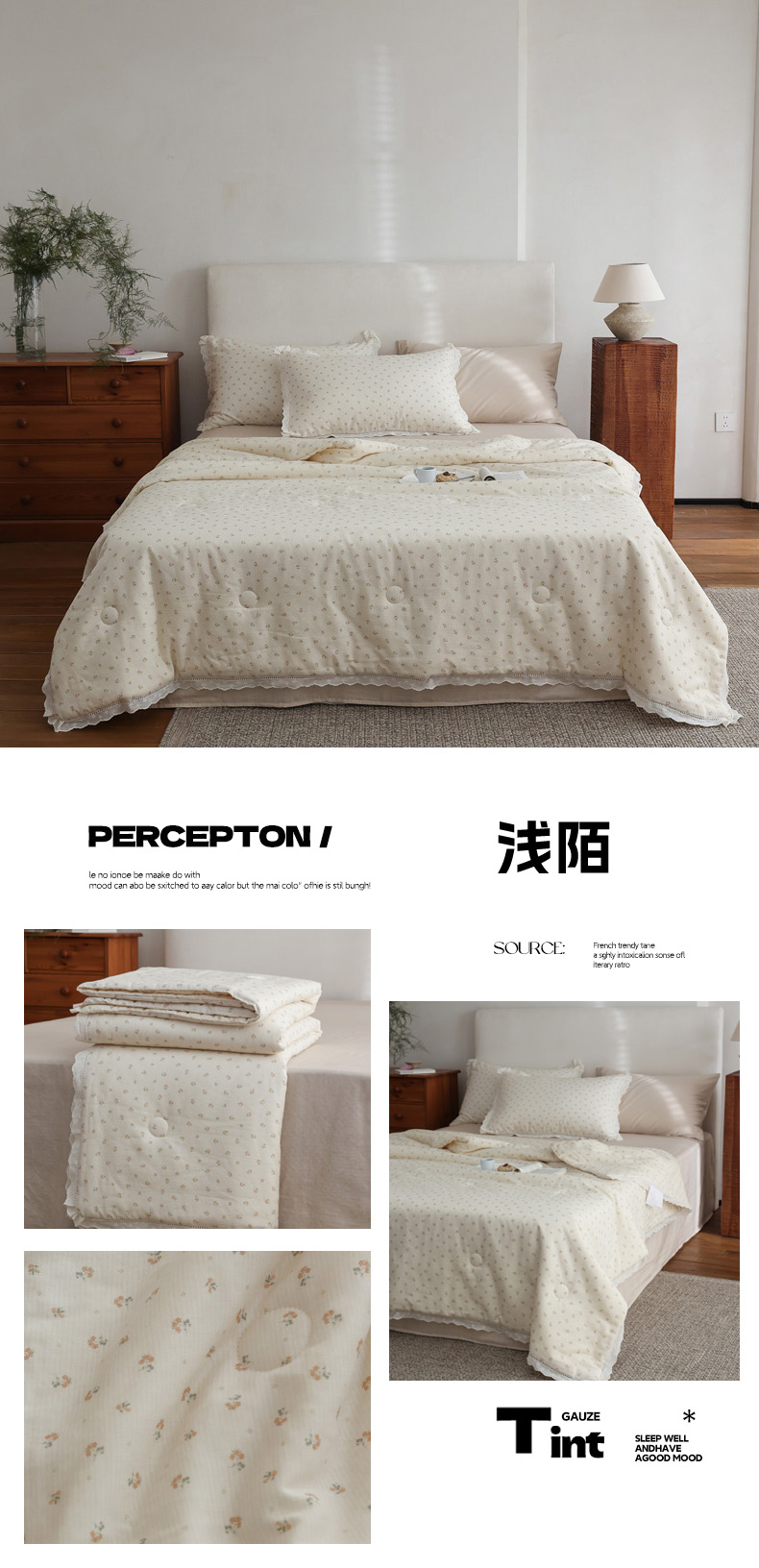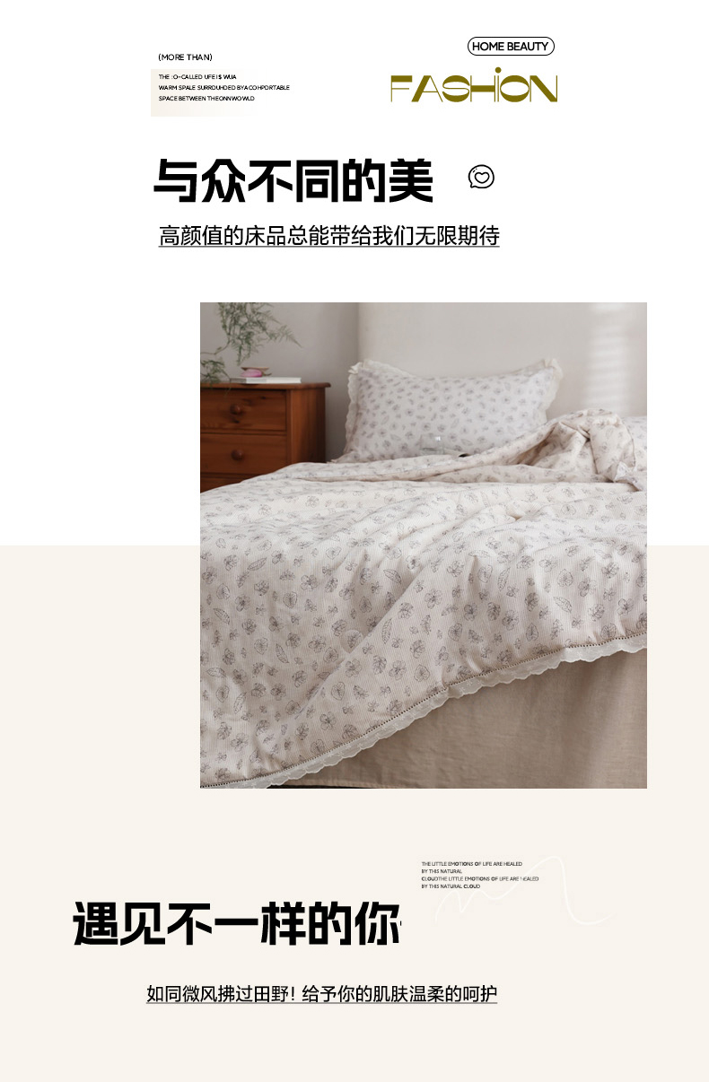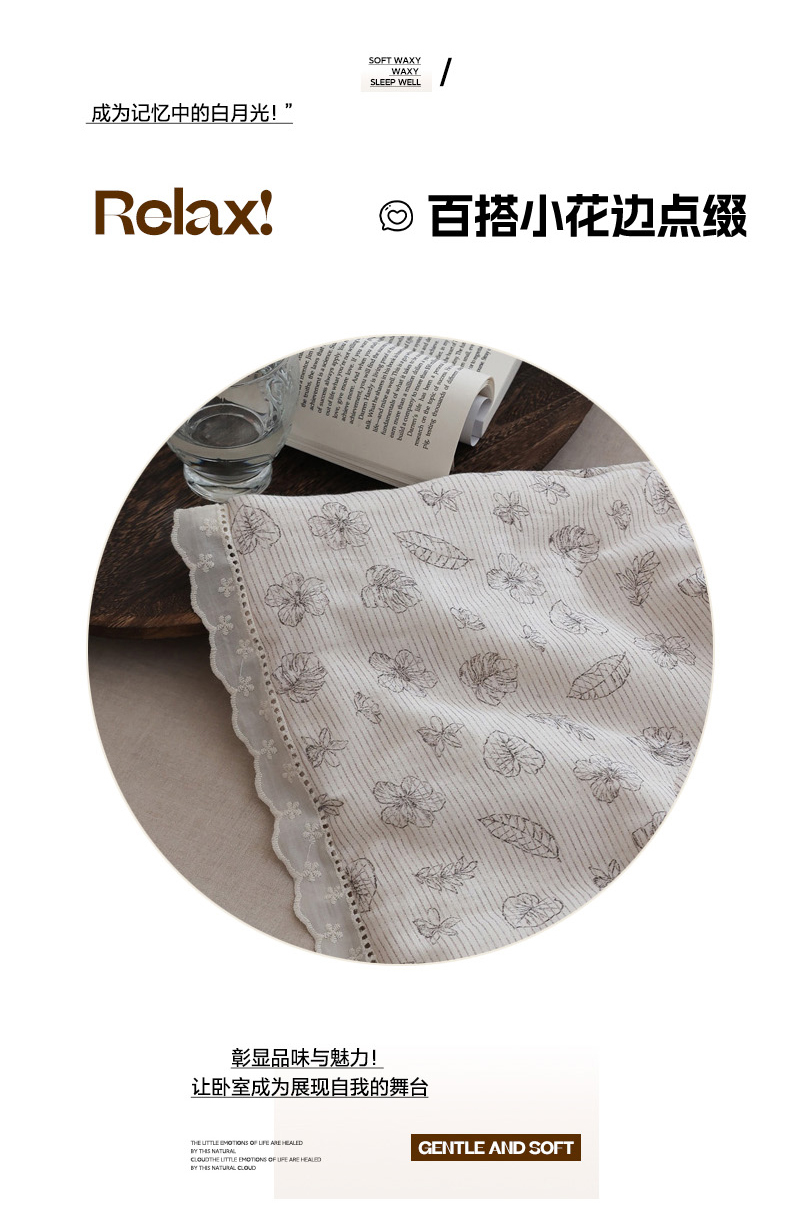 商品名称:万盛家纺 2026新款全棉双层纱花边印花夏被空调被夏凉被 素颜