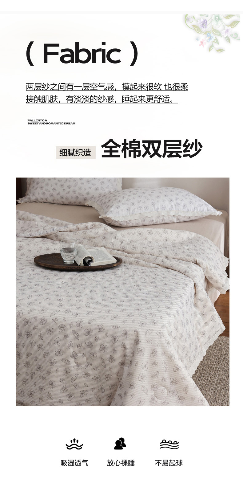 (总)万盛家纺 2026新款全棉双层纱复古印花夏被夏凉被空调被,安屿,风枝,青时,夏影,云舒