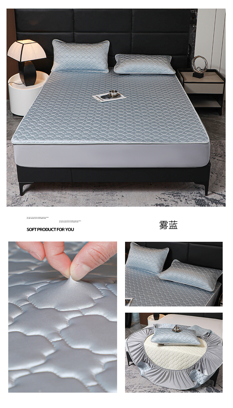 商品名称:多乐家纺 2026新款水光冰丝绸锦氨冰皮加厚乳胶凉席席子 雾蓝-床席款