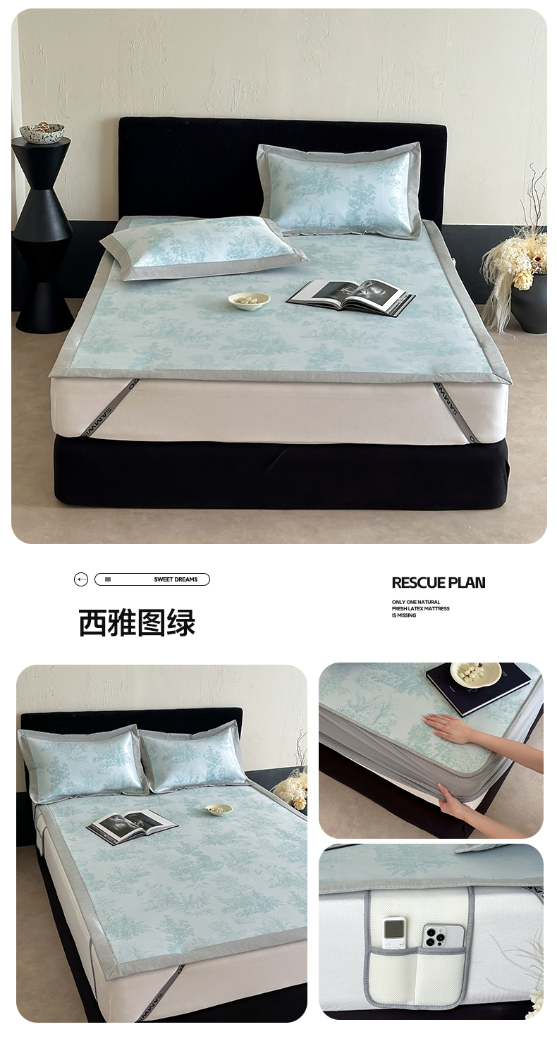 (总)三味舒屋 2026新款A类抗菌防螨凉感提花冰丝凉席,西雅图灰,西雅图咖,西雅图绿床席