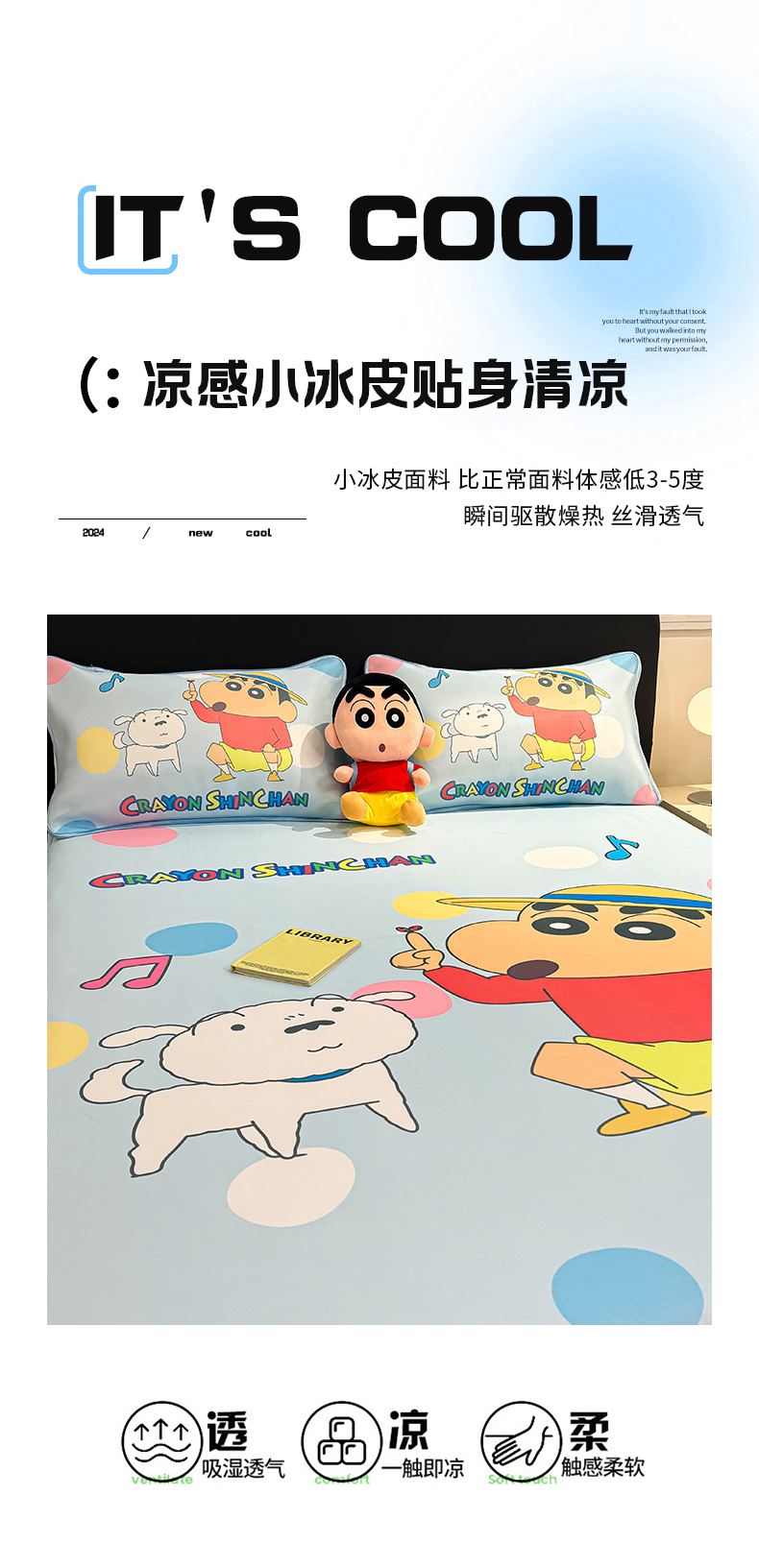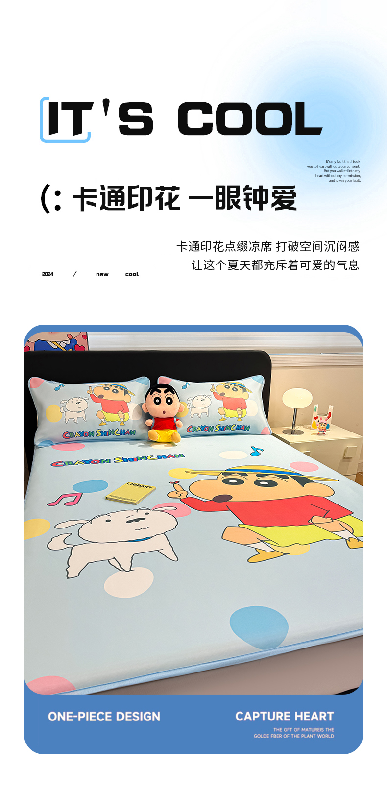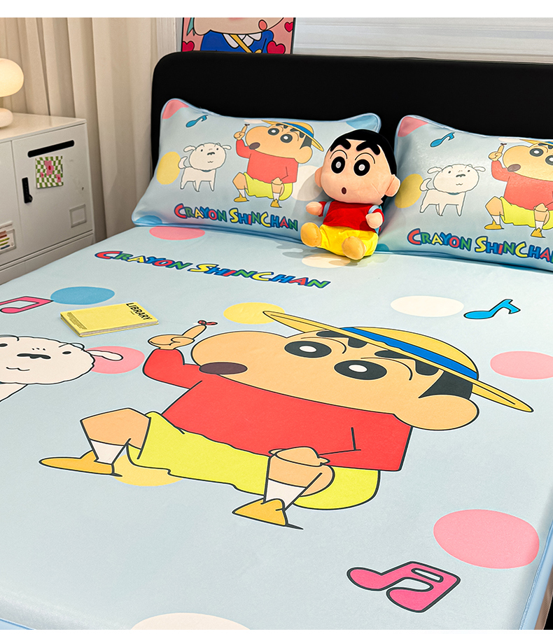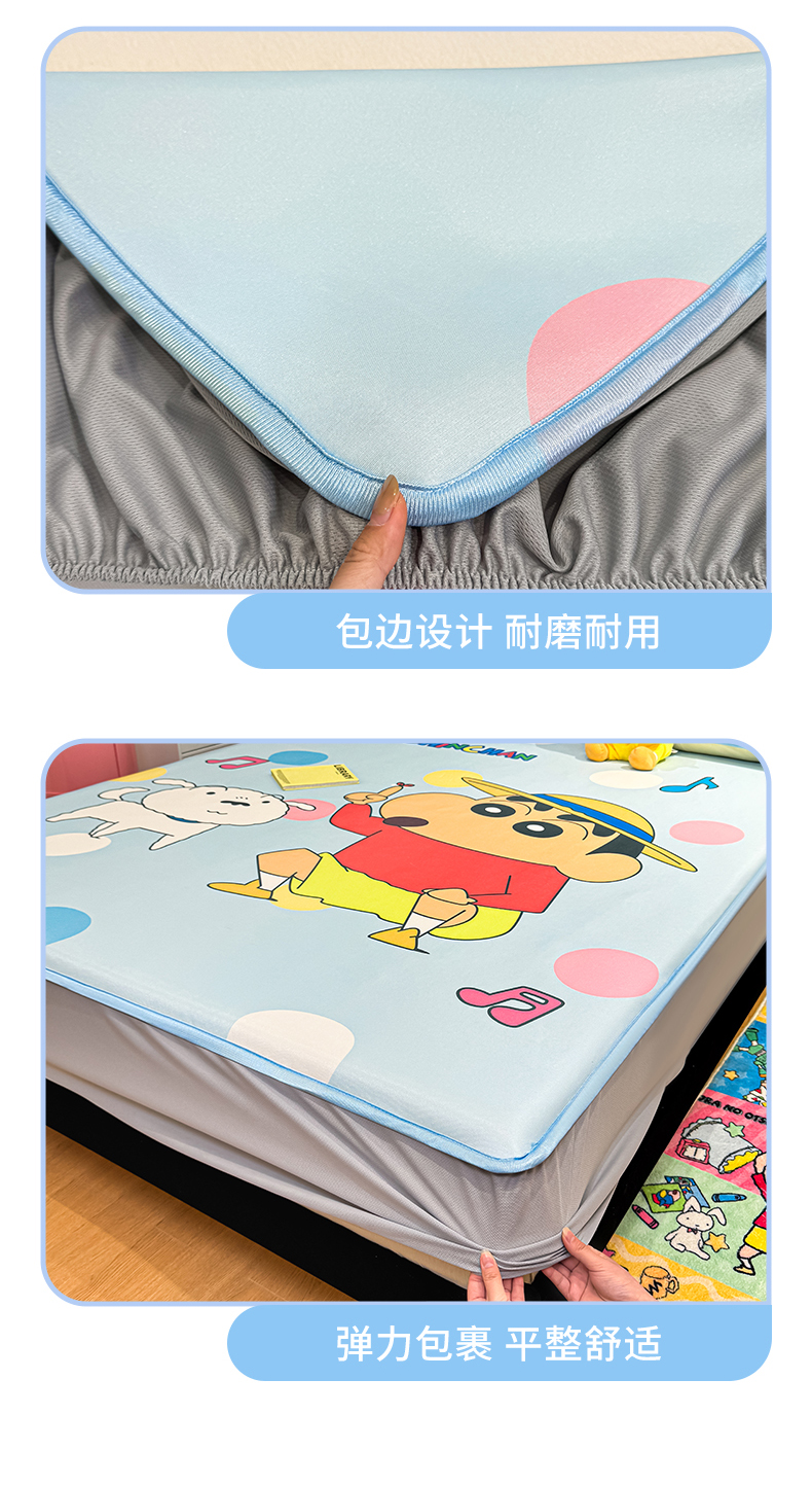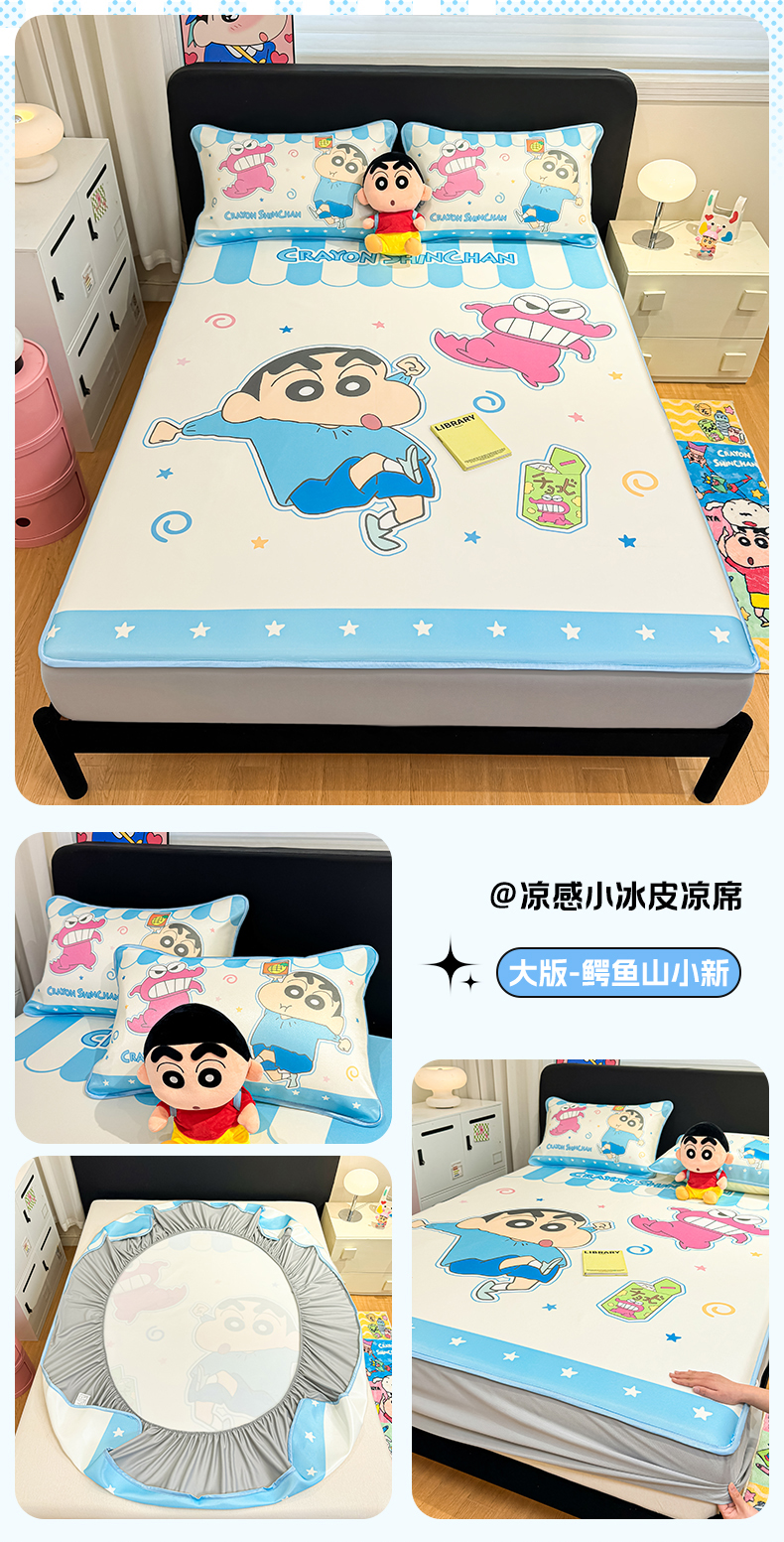 • 91家纺网 家纺一手货源 找家纺 博雅 2026蜡笔小新正版授权小冰皮大版印花凉席床笠款 大版-蓝色小新