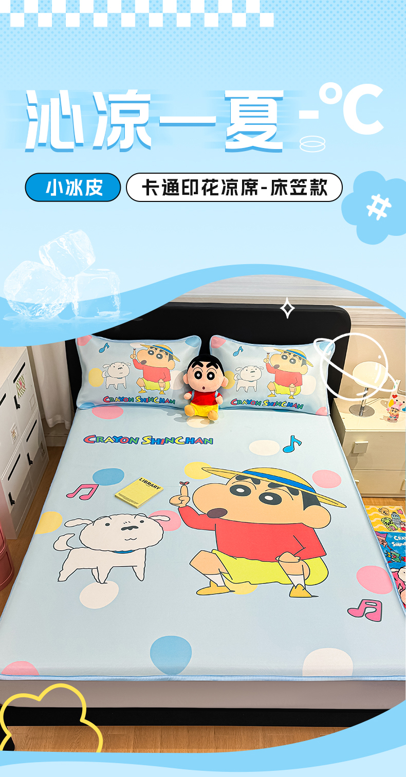 (总)博雅 2026蜡笔小新正版授权小冰皮大版印花凉席床笠款,大版-鳄鱼山小新,大版-蜡笔小新家族,大版-蓝色小新,大版-奶白格子小新,大版-睡衣小新,大版-童趣小新