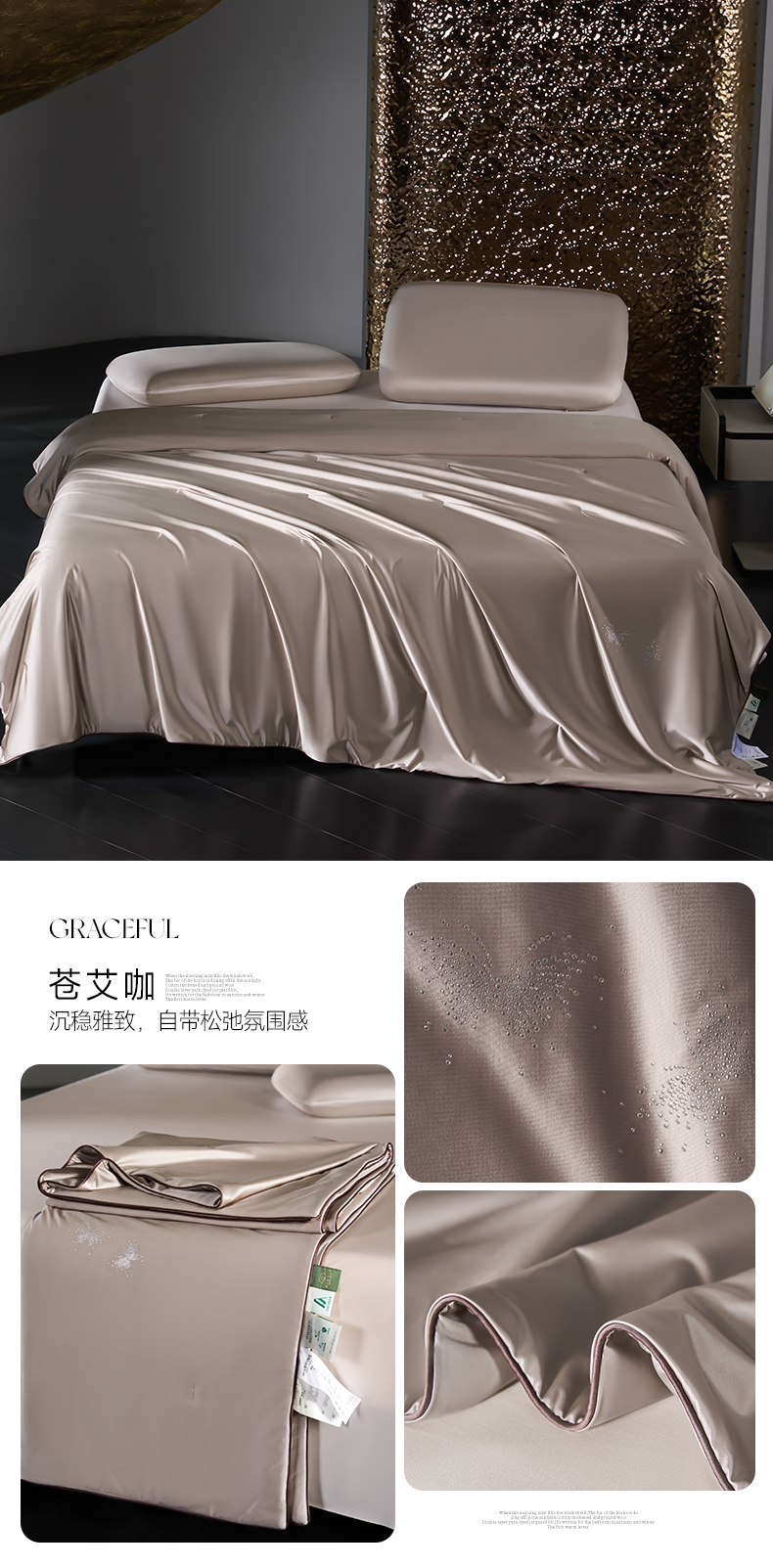 (总)桂雅居 2026新款东芳茶净--福运绵长工艺夏被被子被芯,丝柔绿,丝柔粉,丝柔灰,丝柔金,组合