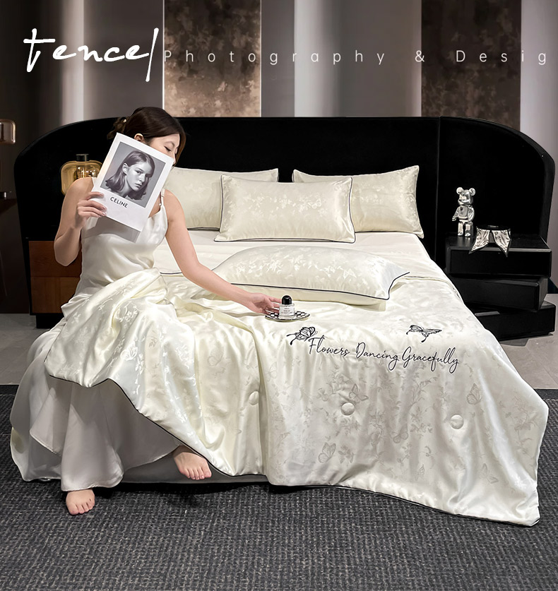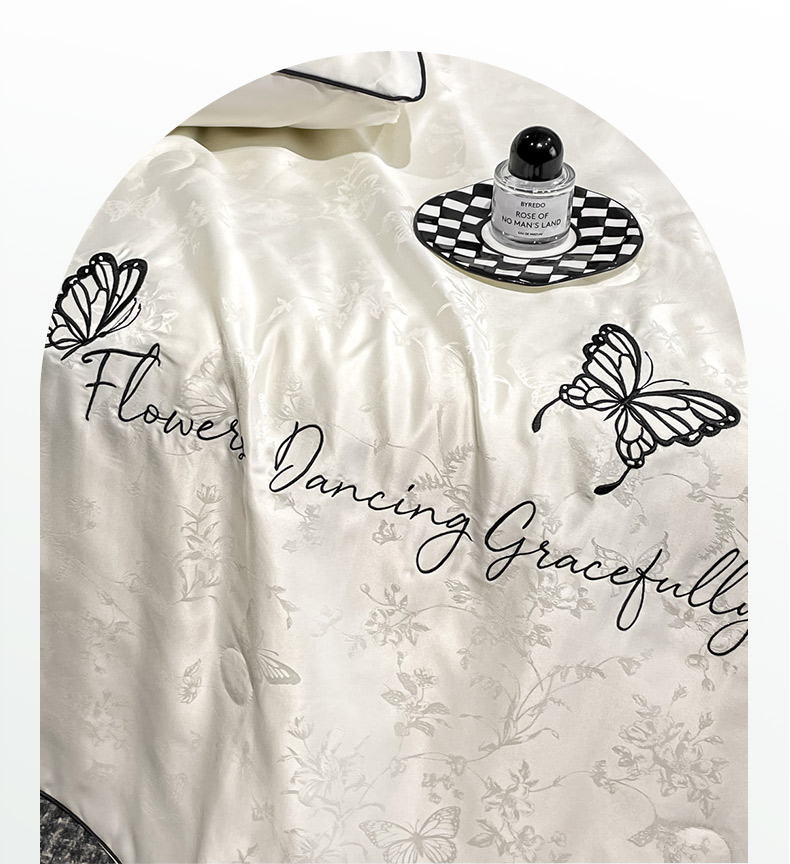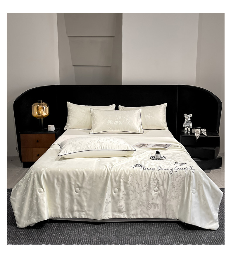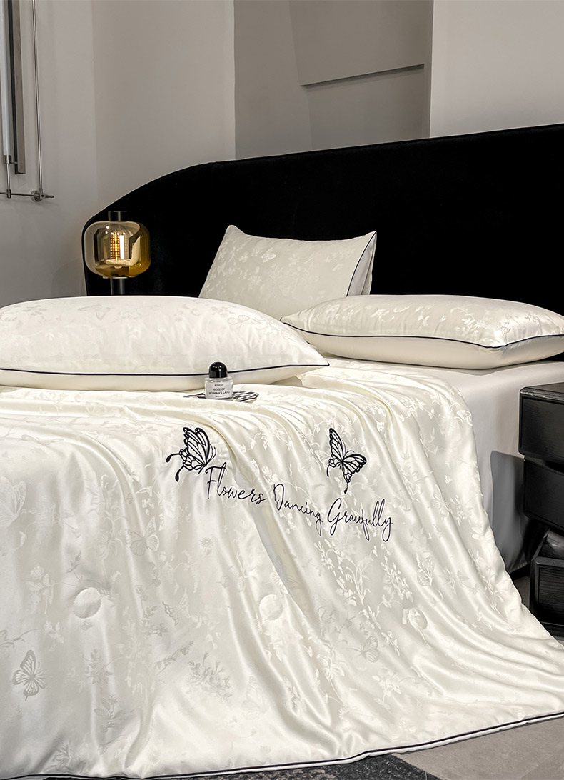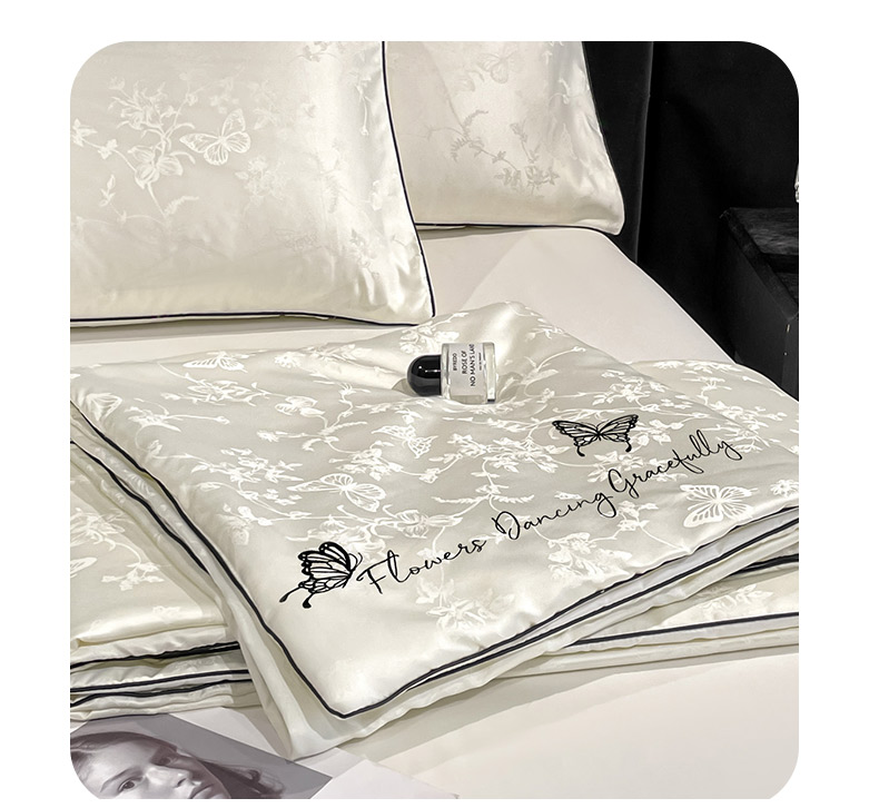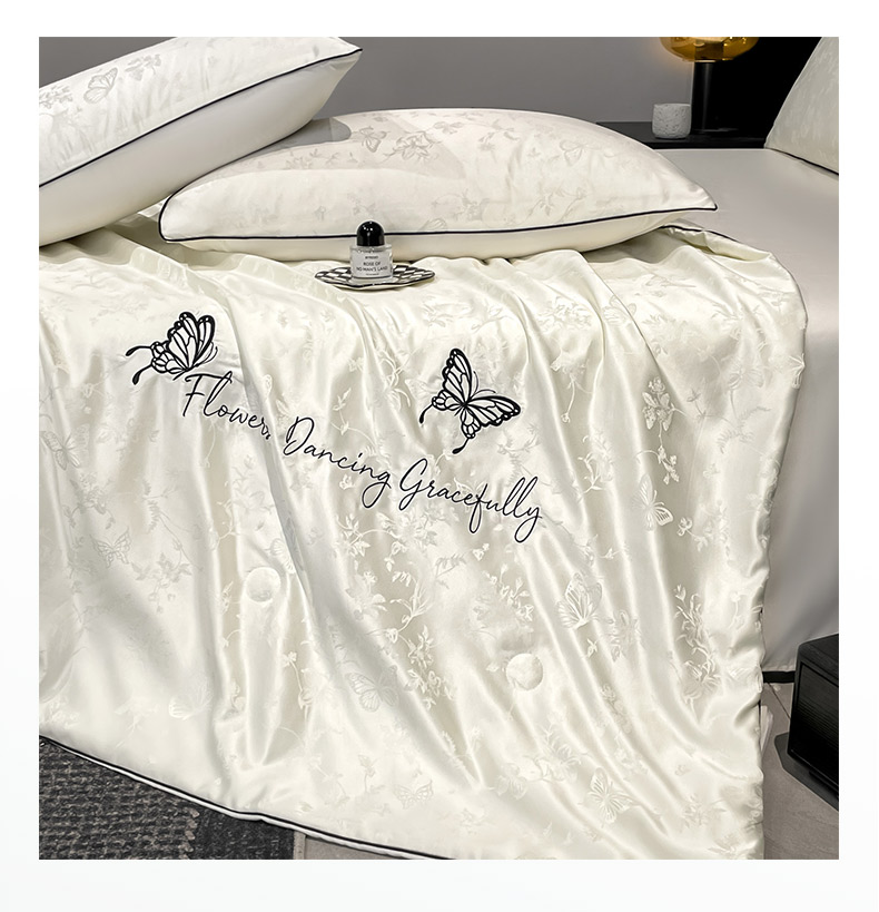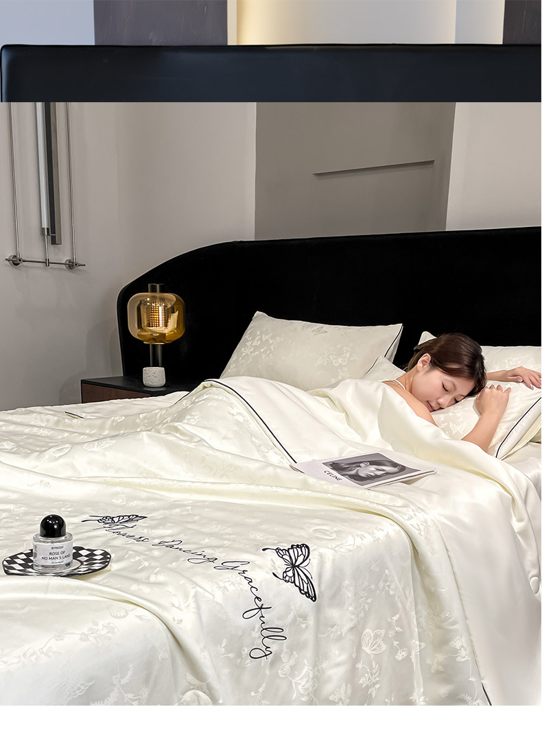 慕澄家纺 2026新款水洗真丝天丝提花刺绣夏凉被空调被夏被四件套-蝶影 蝶影-霜白