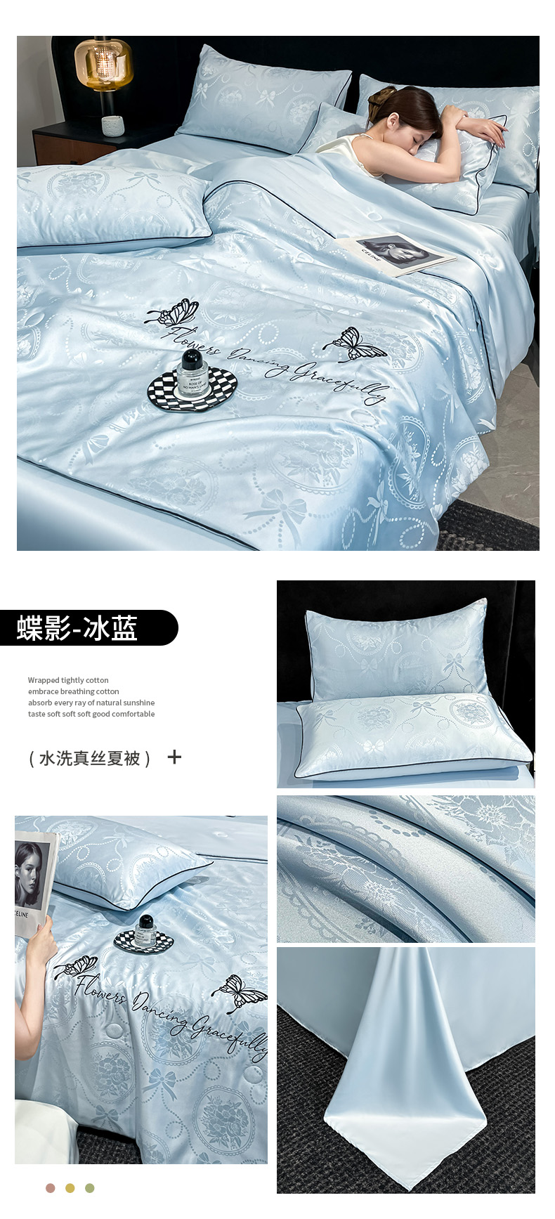 (总)慕澄家纺 2026新款水洗真丝天丝提花刺绣夏凉被空调被夏被四件套-蝶影,蝶影-白+灰,蝶影-冰蓝,蝶影-蔷薇粉,蝶影-霜白,蝶影-香槟金,蝶影-烟青灰