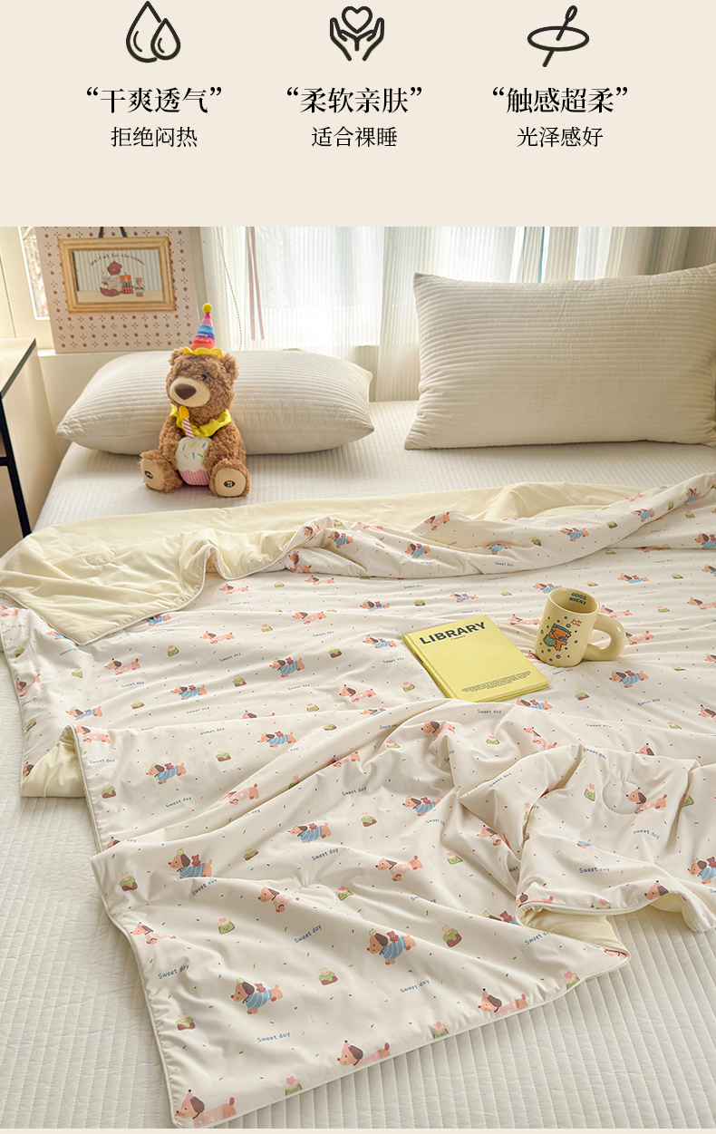 亿梵家居 2026新款锦氨印花凉感夏被 俏皮小狗
