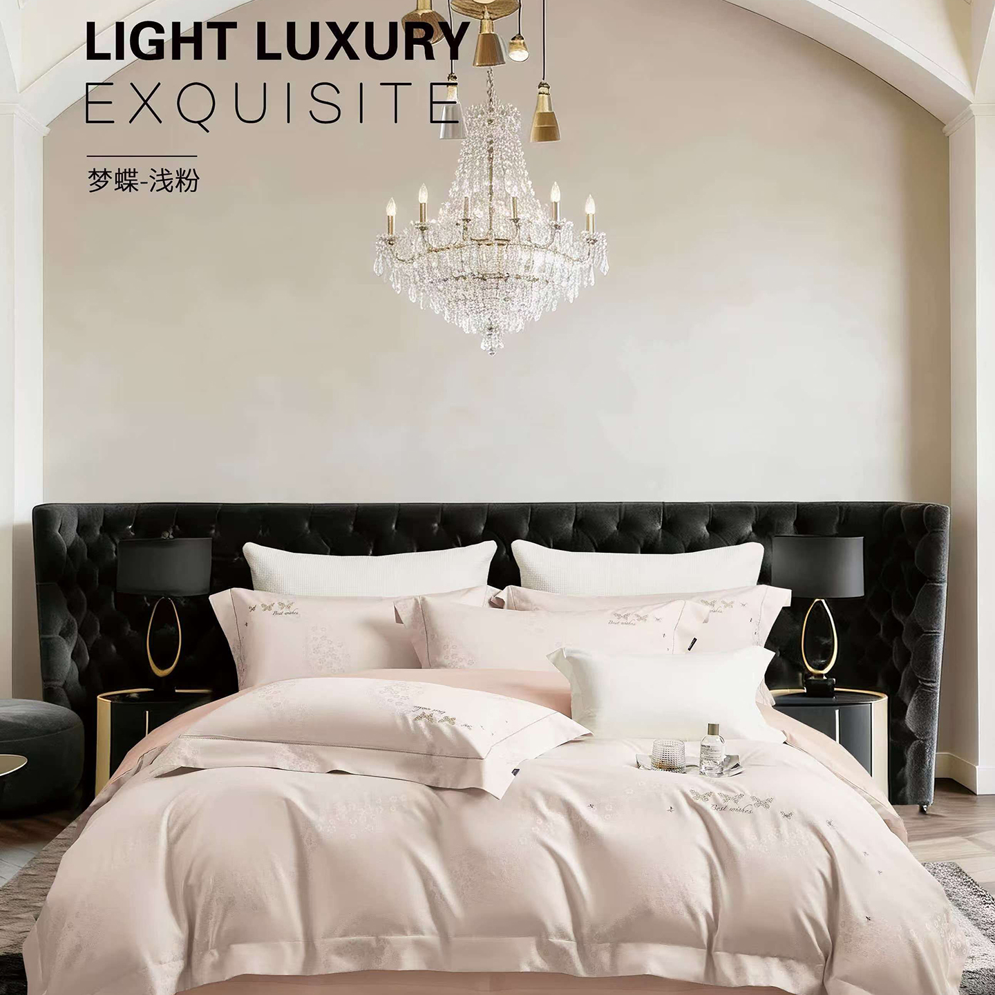 (总)玖玖爱家纺 2026新款全棉色织提花绣花四件套-梦蝶,梦蝶-豆绿,梦蝶-浅粉,梦蝶-香槟,梦蝶-银灰