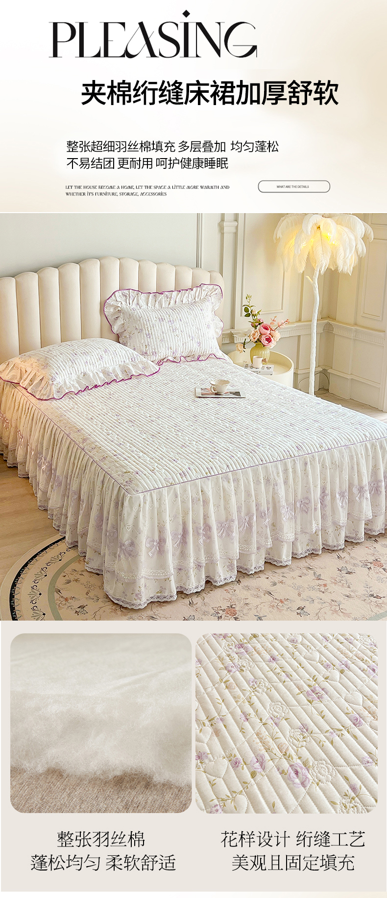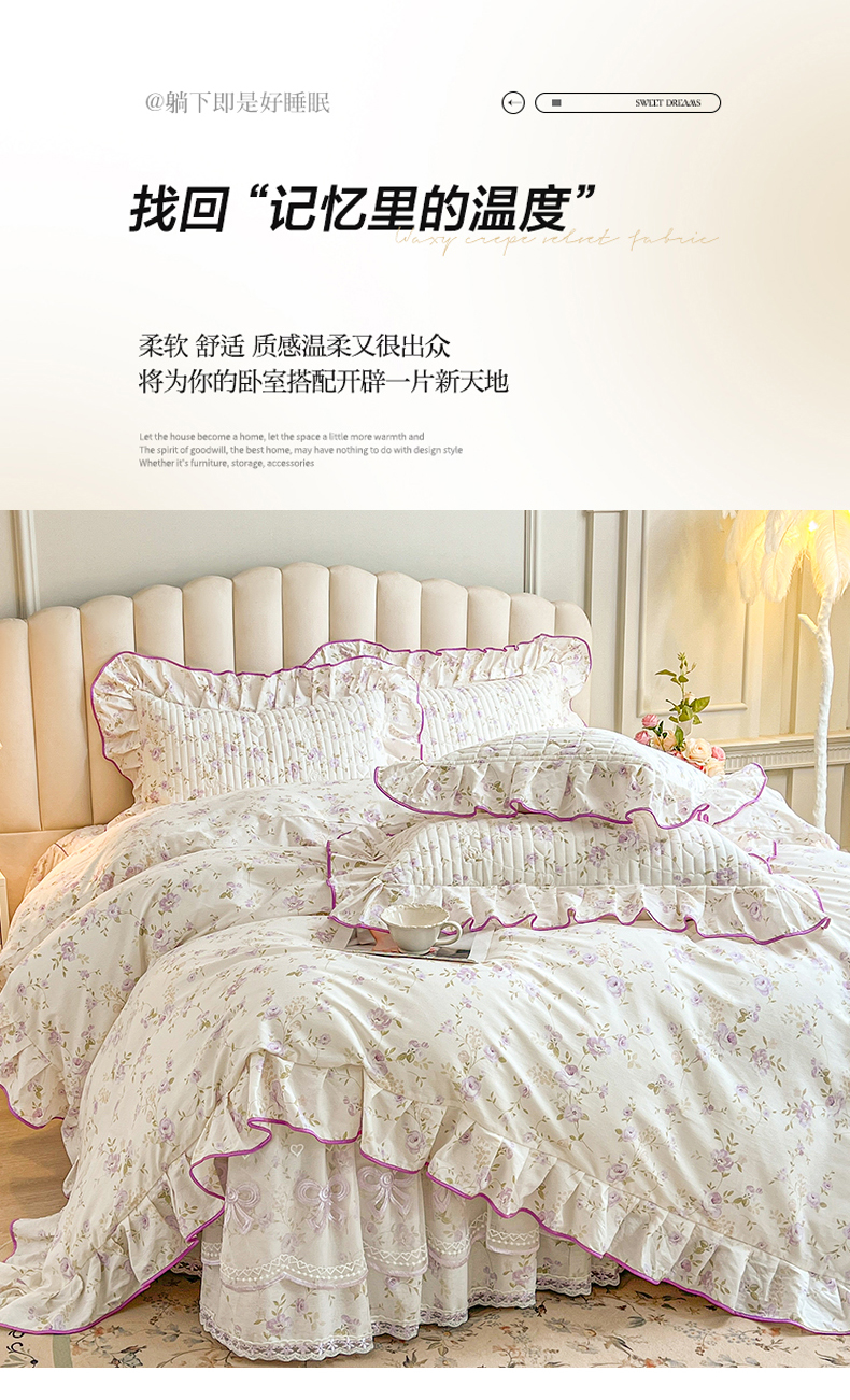 (总)宜凡家纺 2026新款全棉印花公主风夹棉床裙三件套,海棠之恋,镜花映月,水苏栀清,玉容昭婉